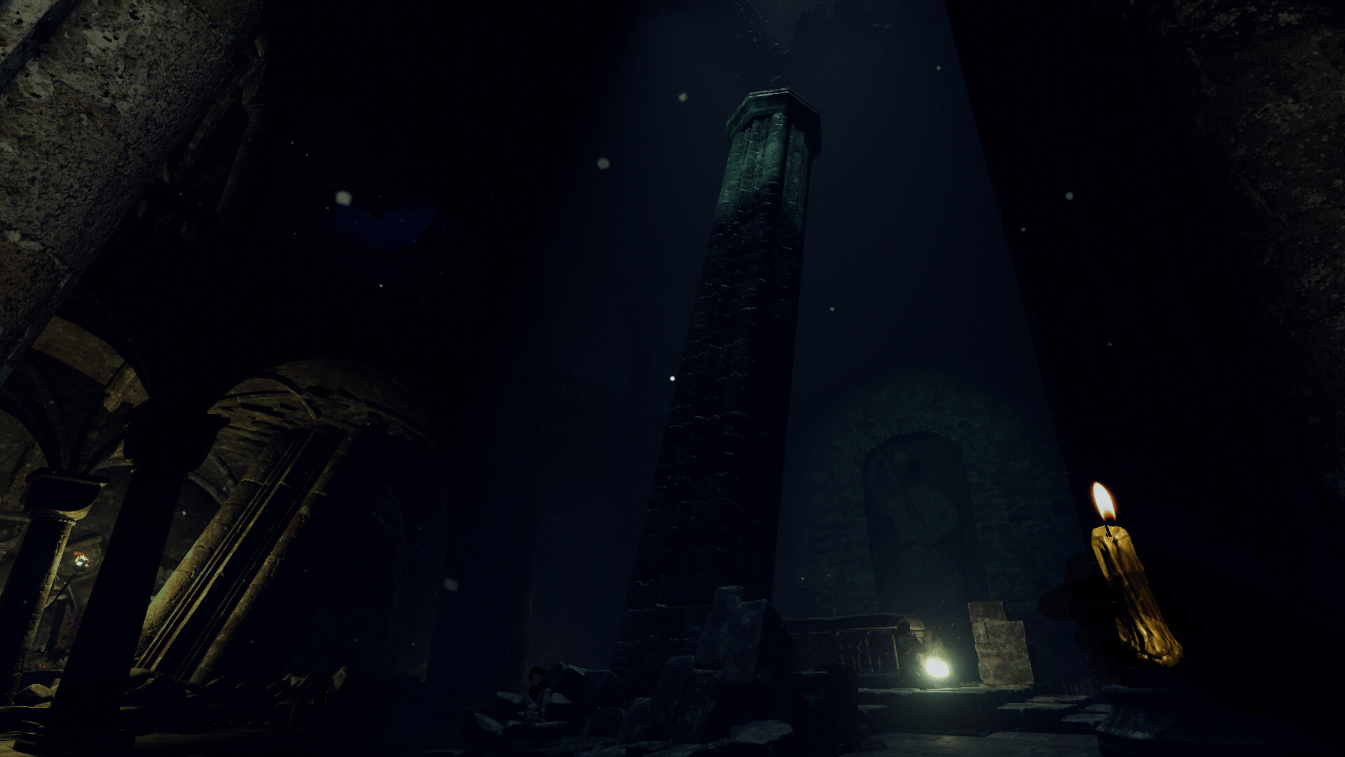 Interstice - Journey into Darkness is a first-person horror game where players explore the Interstice, find candles holding memories of their past life, solve environmental puzzles, and complete character narratives to uncover the truth behind their death.