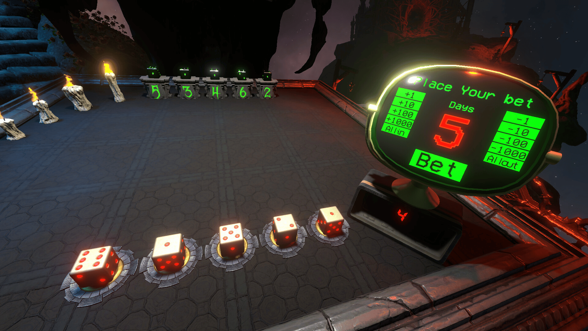 In The Last Game, face the Angel of Death in a high-stakes dice poker match for your life. The currency? Days of your existence. Win back time or risk losing it all in this tense battle of chance and strategy. Can you outsmart Death, or will your days run out?