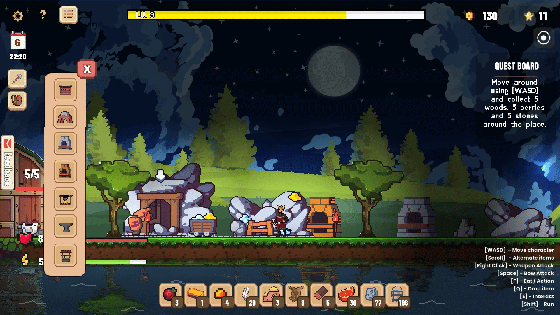 TinyCraft Town is a simple 2D pixel art survival game focused on light resource management, crafting, and exploration. Gather materials, cook food, fish, build workstations, craft weapons and restore a small ruined village. Inspired by games like RuneScape and Conan Exileswithout the complexity.