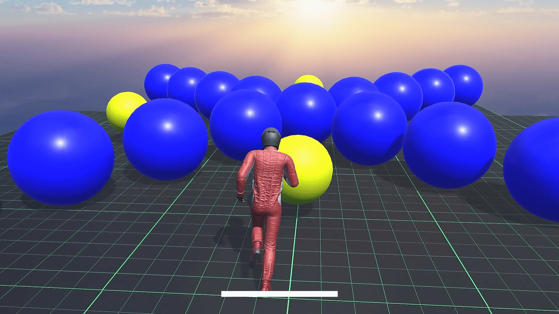 "Only Dodge!" is a game inspired by The World's Hardest Game. The player remotely controls the main character with the goal of helping them escape. Players must avoid blue spheres, touch all yellow objects within each stage, and reach the green area to clear the stage.