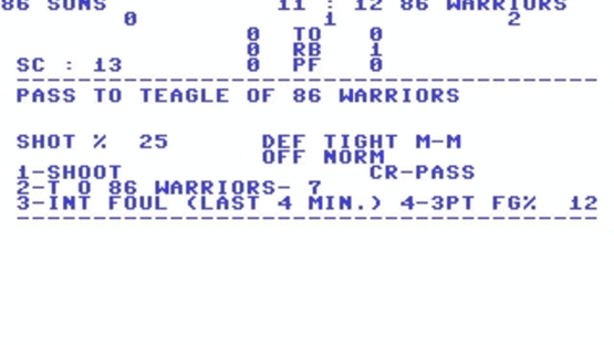 Basketball: The Pro Game lets you coach your favorite NBA teams, both present and past! Realism and excitement are the trademarks of this strategy-simulation. Talk about dream matchups? How about the '85 Celtics with Larry Bird against the '72 Lakers with a young Kareem Abdul Jabbar or the '84 Sixers with Moses and Dr. J vs. the '70's Knicks powered by Willis Reed, Dave DeBusschere and Walt Frazier. The Pro game features the 23 NBA teams from '86-'87 and more than 125 great teams of the past.