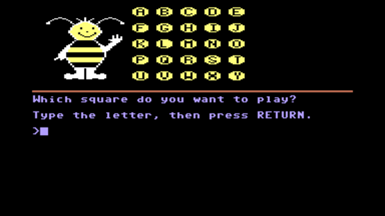 Bingo Bugglebee Presents: Home Alone is an educational game about home safety for multiple systems. Played on a 5 x 5 bingo card, the player is asked multiple choice questions about home safety for every box they select. If the player answers correctly, they get the space and a single point, and are blocked from the space if they answer incorrectly. The player gains 5 bonus points if they score 5 in a row, and Bingo Bugglebee dances for the player. The goal is to score as many points as possible.