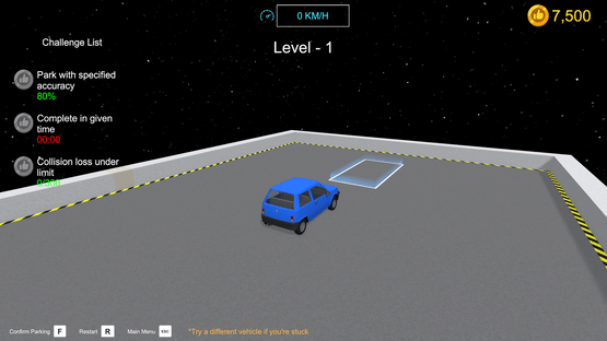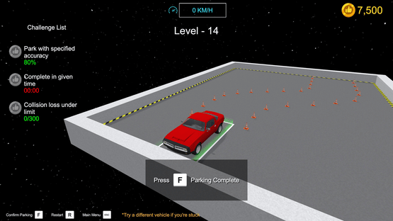 Choose a suitable vehicle, use the four directional keys, and drive it into the designated parking area. That's it.