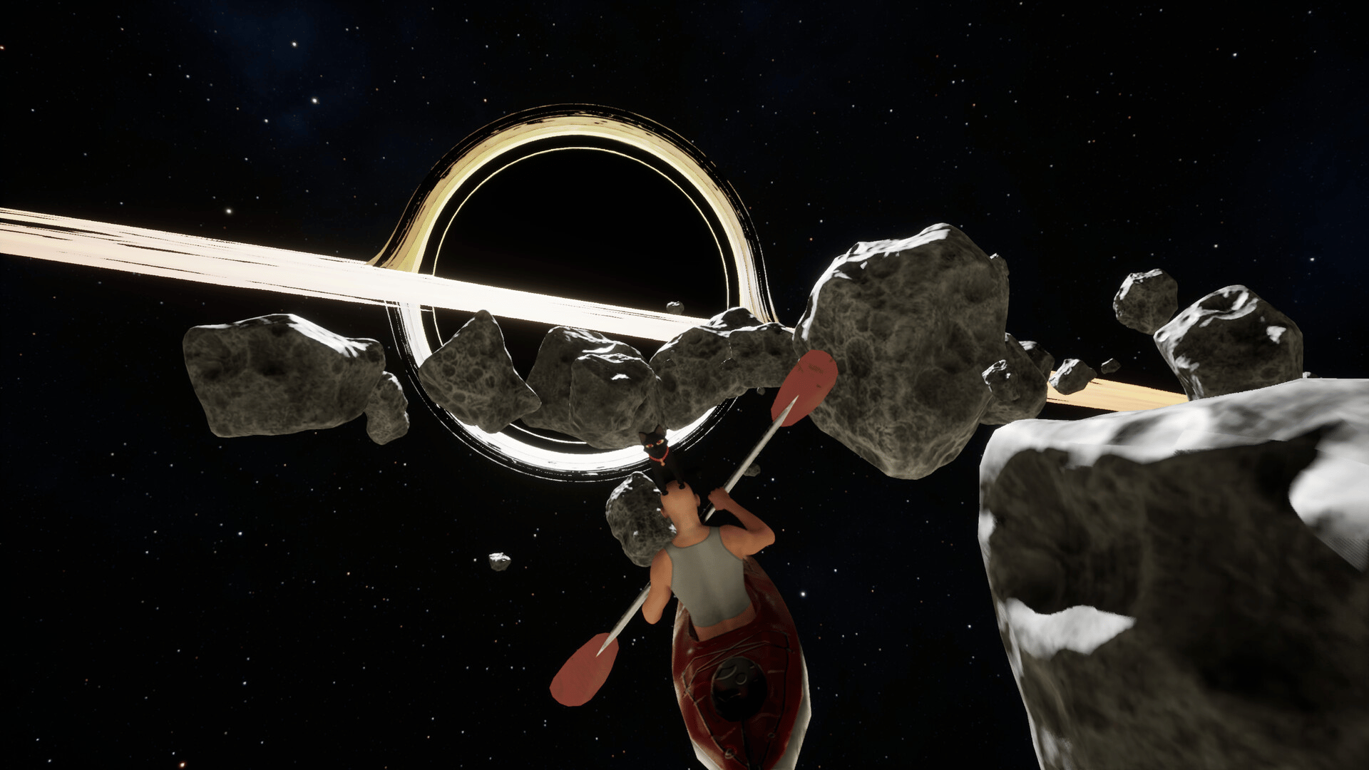 At first, even paddling might feel difficult. That's okay. everyone starts out that way. Ride a kayak with your guide cat and travel across the world, collecting hidden items along the way. By the end of your journey, you'll have become the true King of Kayaking.