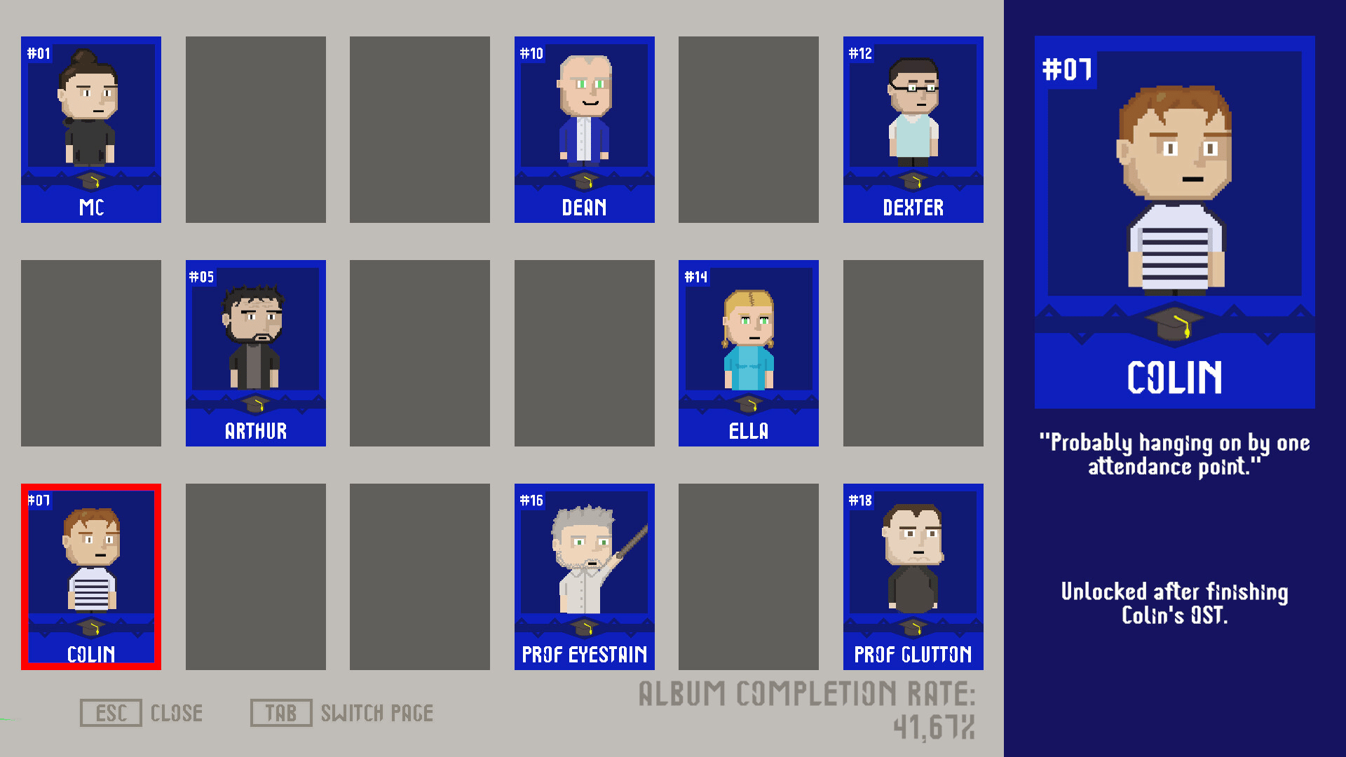 A twisted narrative adventure with branching quests and deadly choices. Relive the same cursed day in a darkly comedic university full of violent classes, shady professors, and disturbing secrets.