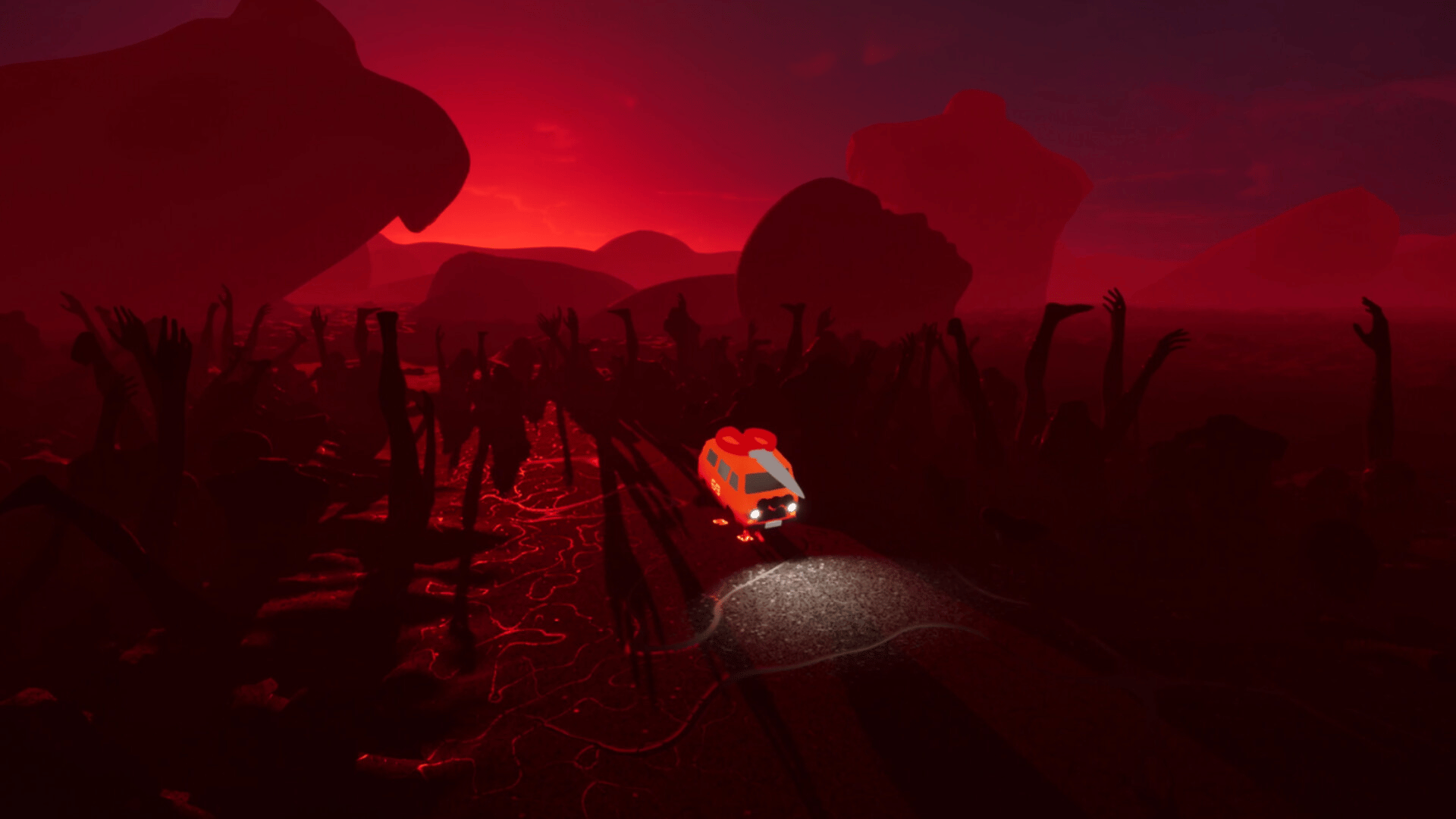 Van Wheel Gone is a quirky adventure platformer where you guide an orange van through nine surreal hellscapes to recover its stolen wheels, using strange powers like scissors, headlights, time control, and even flight in a bizarre underworld.