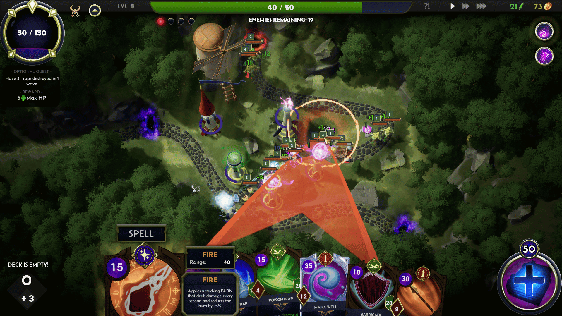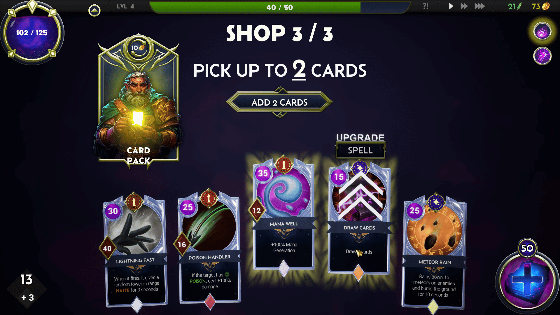 Deck Vs Doom is a deckbuilding tower defense game where you use cards to deploy towers, traps, and spells to stop relentless waves of enemies. Between battles, you visit different shops to expand and upgrade your deck, collect powerful artifacts, and shape unique strategies. The game features wave-based progression, endless build possibilities, and evolving synergies that grow stronger with every run.