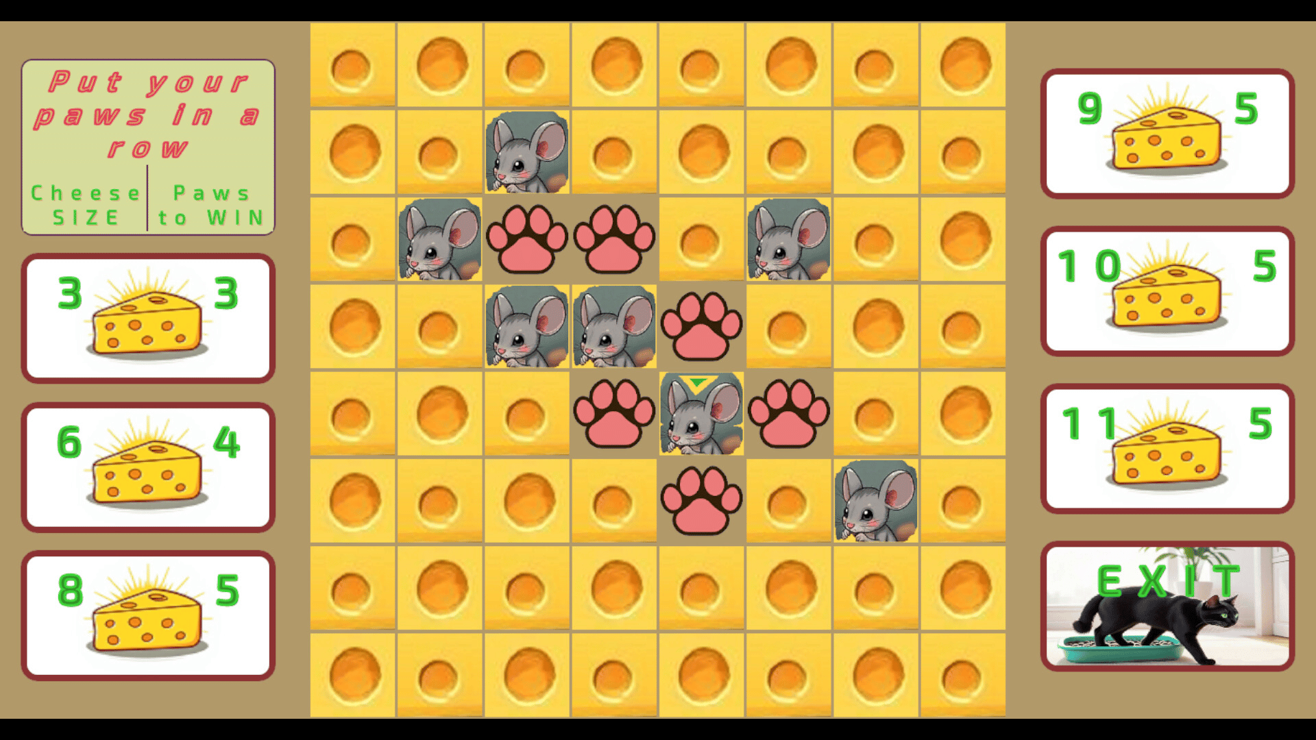 Basically tic-tac-toe games from classic 3x3 three-in-row to challenging 11x11 five-in-row. Designed for kids and adults to develop logical thinking while playing relaxing game.