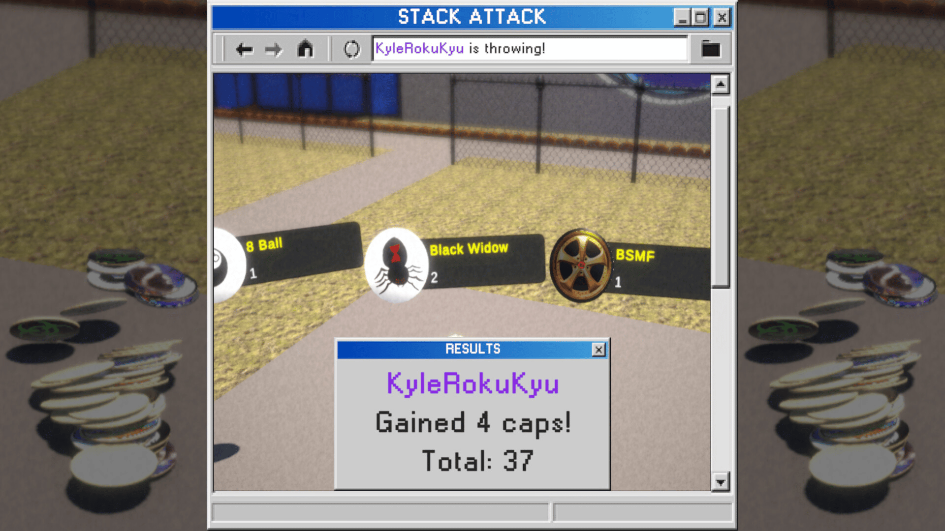 Stack Attack is a trip down nostalgia avenue. Taking the form of a fully Twitch integrated (Required) app, your chat attempts to gain the most caps by taking turns knocking down the stack and seeing which caps they can flip over. Increases chat engagement and, thus, algorithm response!