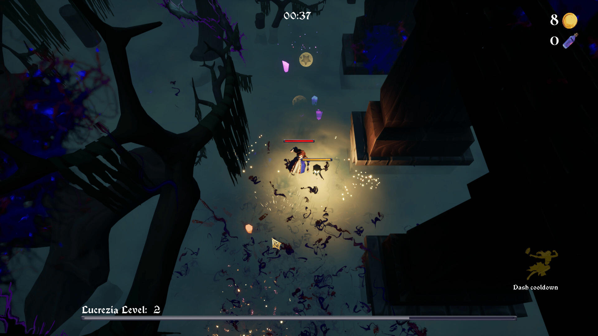Fiora is a roguelike game in which you will see randomly generated maps, you need to fight shadows, and along the way collect firewood to maintain the flame of Fiora, without which you will not be able to use magic.