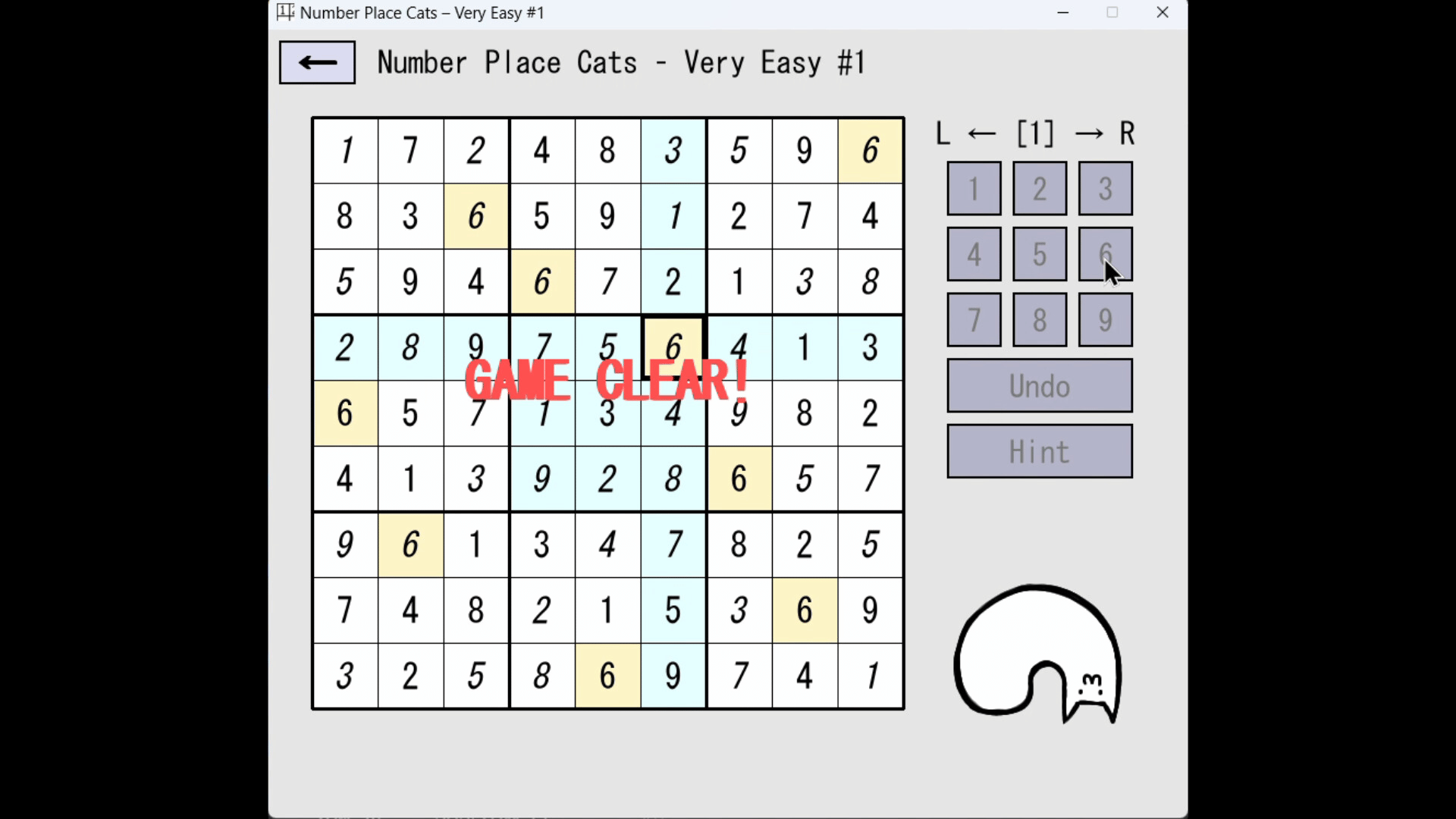 The number place (Sudoku) puzzle with cute cats that beginners can enjoy. There are total 900 puzzles. 100 puzzles of different difficulty levels. With erase function, undo function and hint function, you can challenge yourself to solve difficult puzzle.