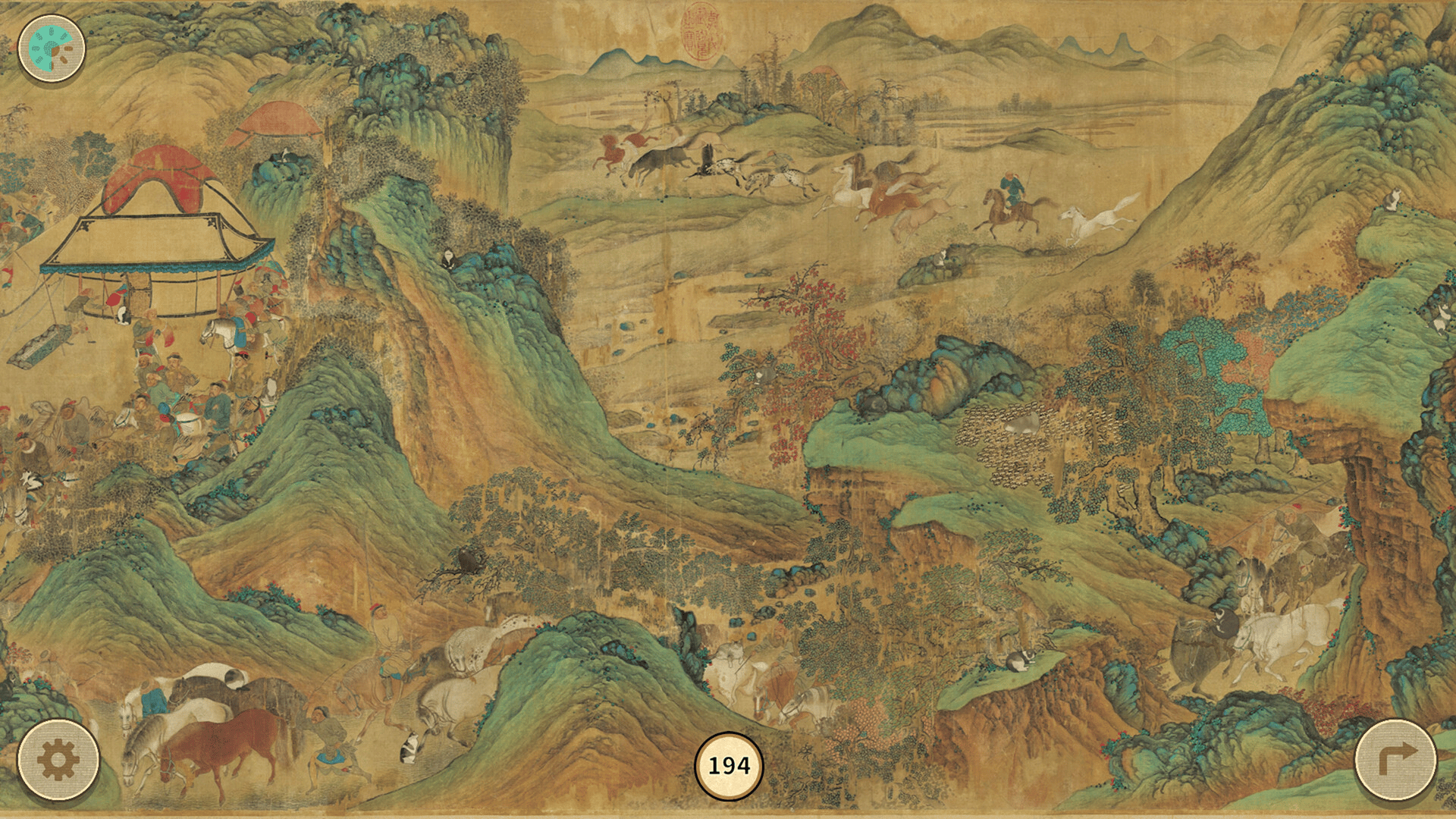 Embark on a relaxing search for hidden cats in the majestic ancient scroll Autumn Hunting in the Plains of the Yuan Dynasty!
