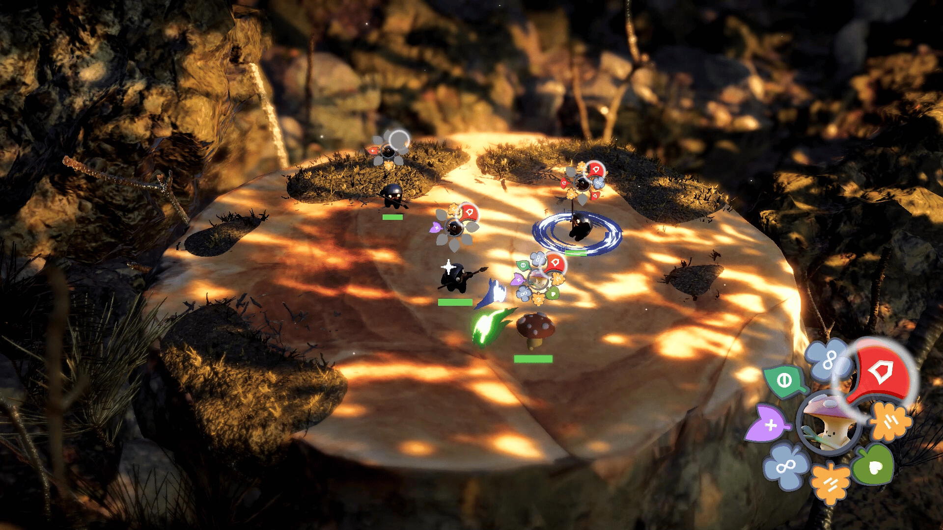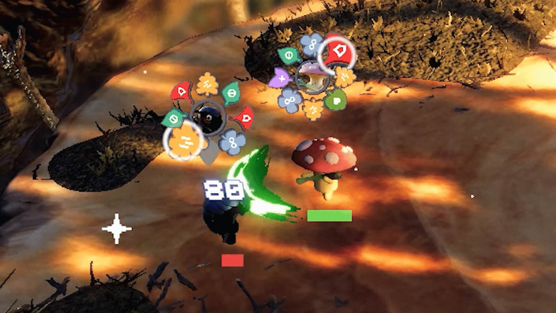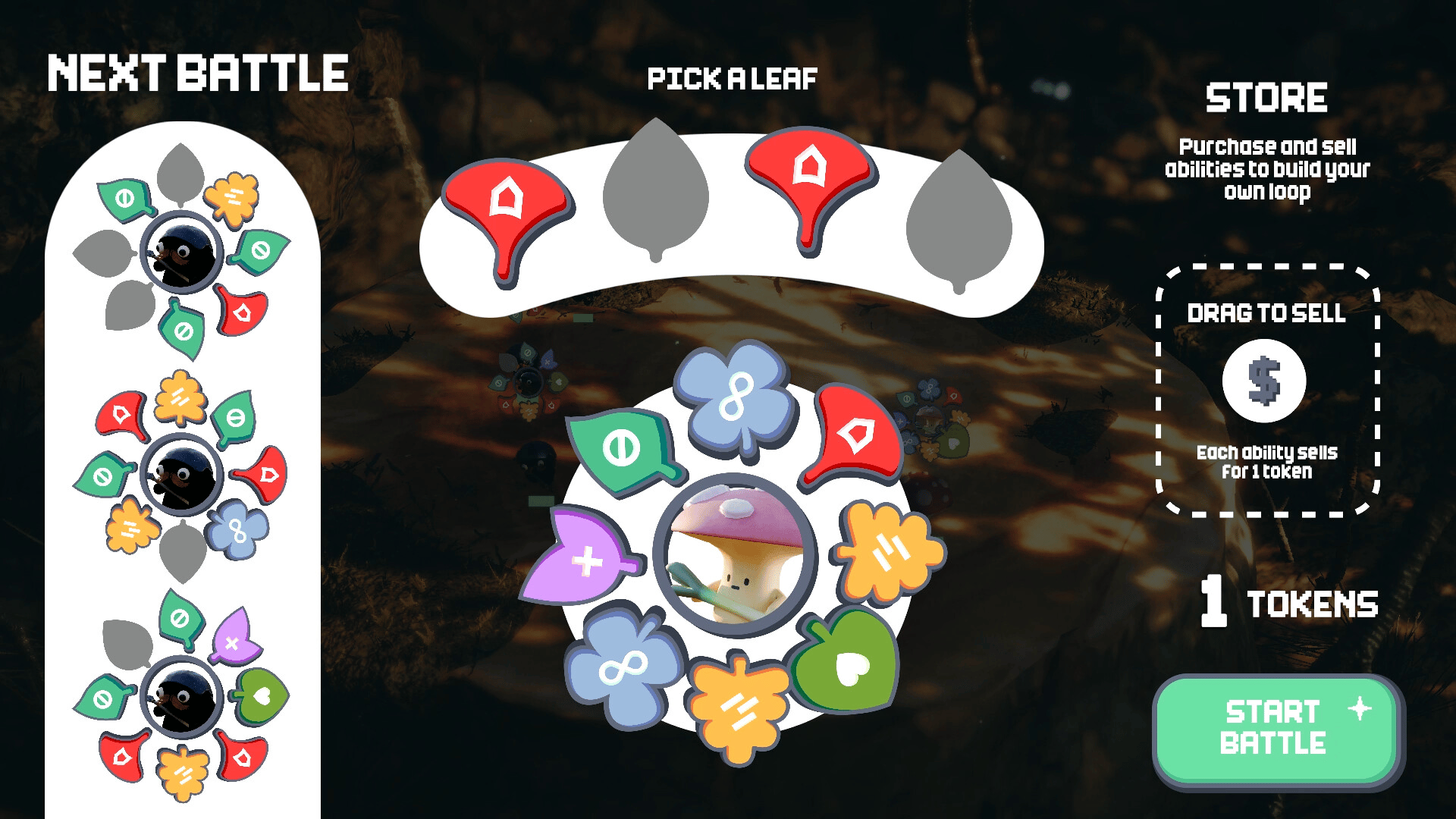 You are a tiny mushroom fighting isopods on a stump. Player and enemies are tied to a looped ability system that perform actions automatically in a cycle. Each wave increases in difficulty, try to survive as long as you can.