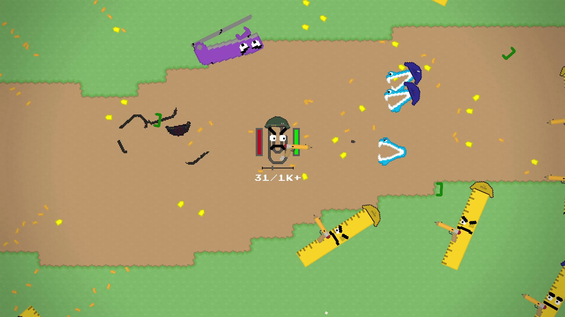 An arcade top-down shooter where you play as a genocidal paper clip armed with heavy weaponry fighting hordes of office supplies to the death. Save the Clipenberg Empire from the threat of the Rulerian Alliance in Story Mode, or go for a high score in Infinite Mode.