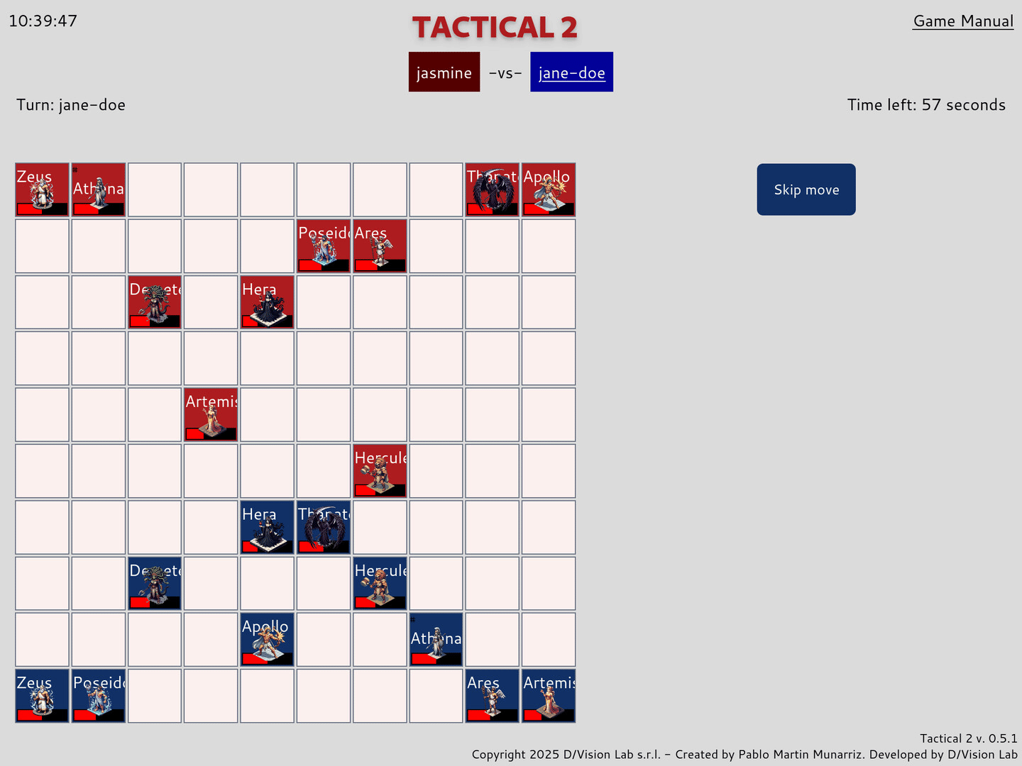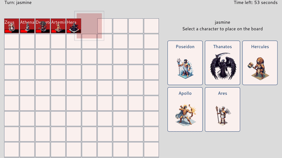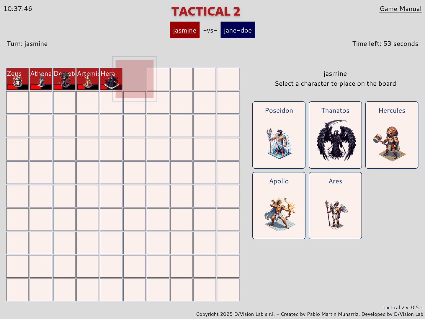 Tactical2 is a turn-based strategy board game where two teams of ancient Greek deities battle for supremacy across a 10x10 grid. Take command of powerful gods, deploy them wisely, and harness divine abilities to crush your enemies and invade their territory!