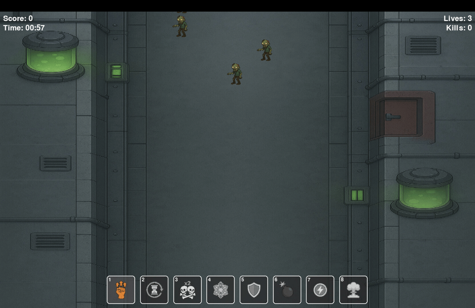 Zombie Smash is a thrilling 2D top-down arcade-style game where players face endless waves of zombies. Packed with adrenaline-fueled action, power-ups, and fast-paced gameplay, this game challenges your reflexes as you survive and smash your way through hordes of the undead.