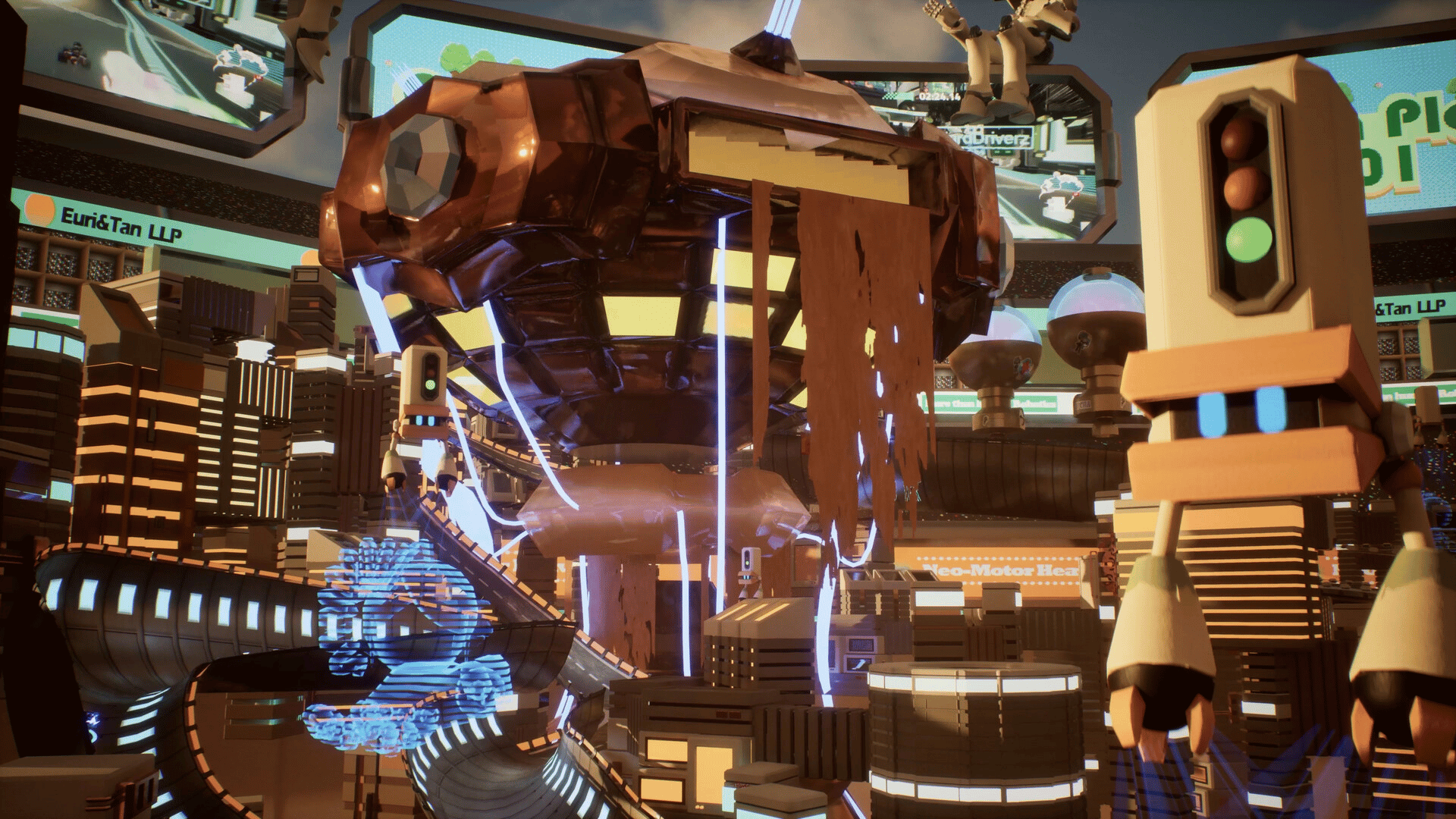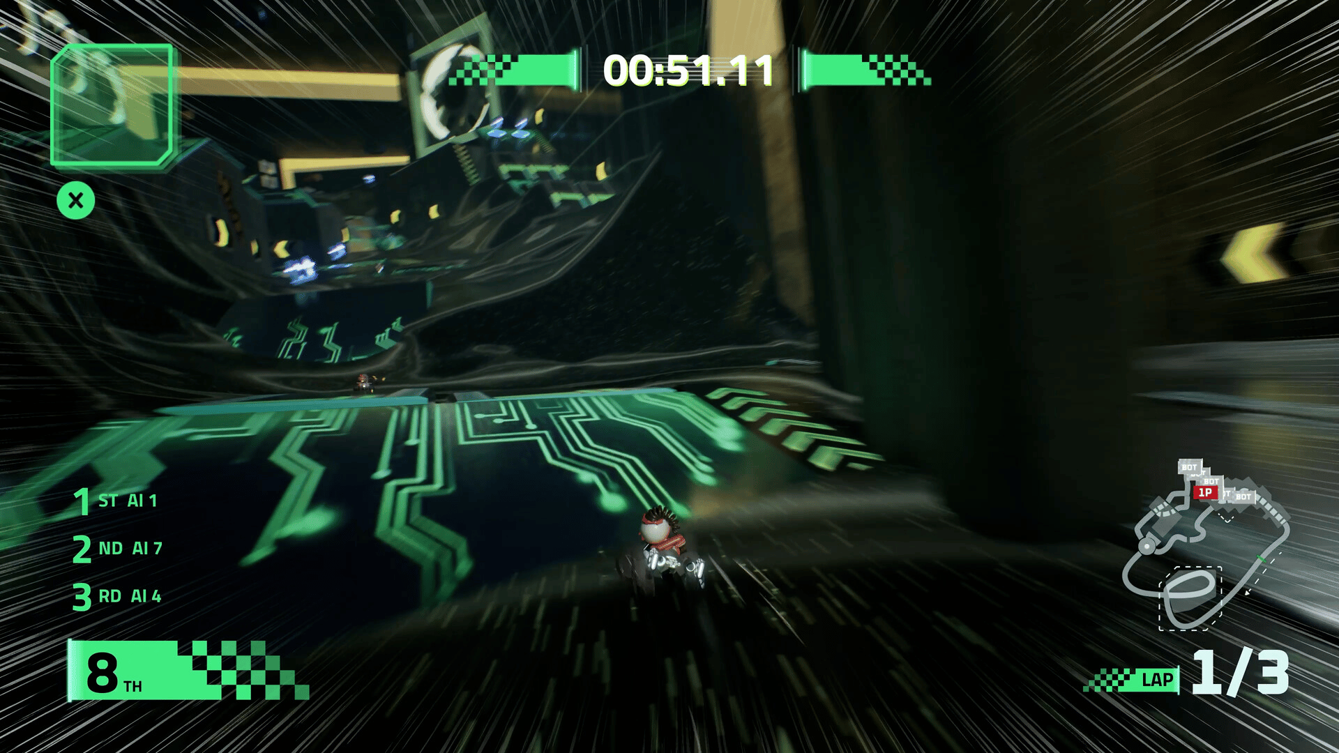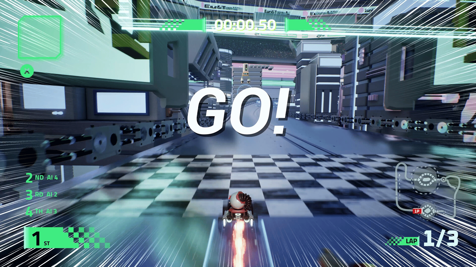 Burn rubber across futuristic cityscapes on twisting gravity defying tracks with customizable karts in this competitive arcade racer!