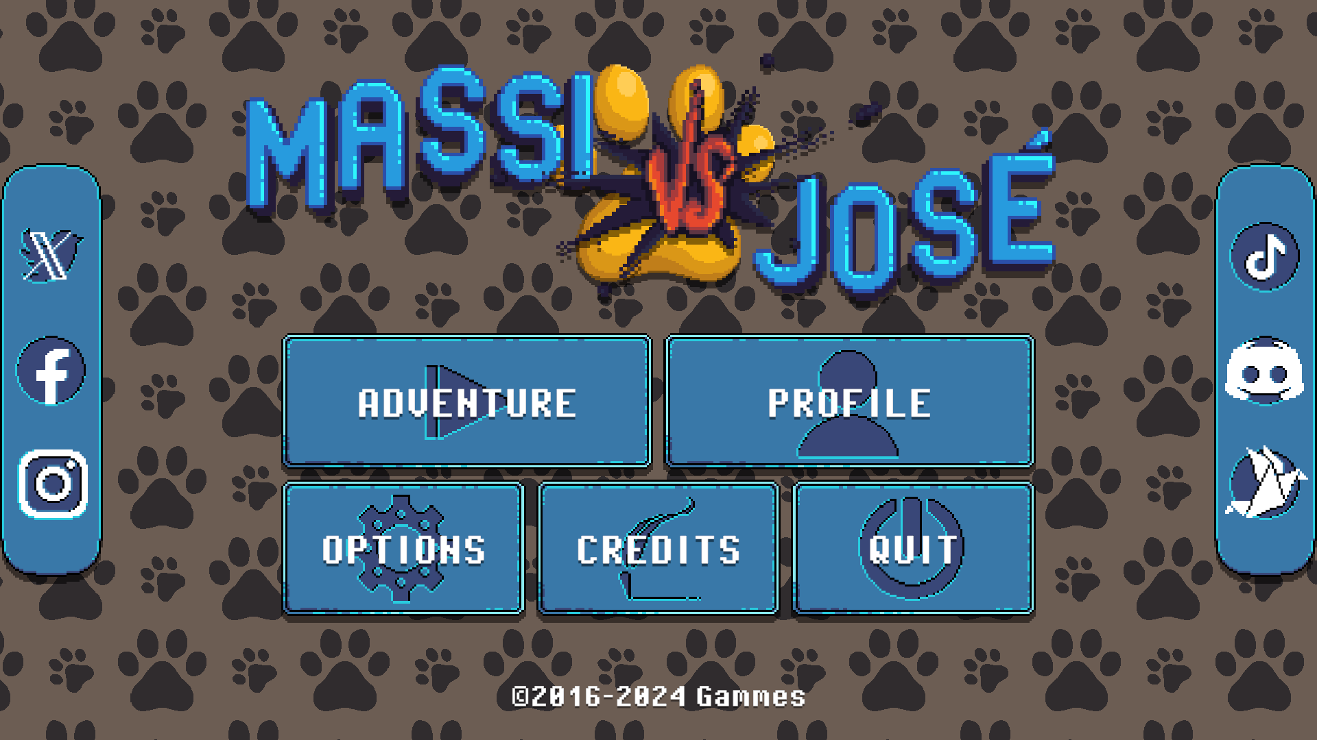Explore 8 different themed worlds, get collectibles and find the key, in 40 levels with different kinds of platforms and diverse challenges. Massi vs. José is a 2D platformer with beautiful pixel-art and wonderful music. Get achievements and aim for the top of the scoreboards!