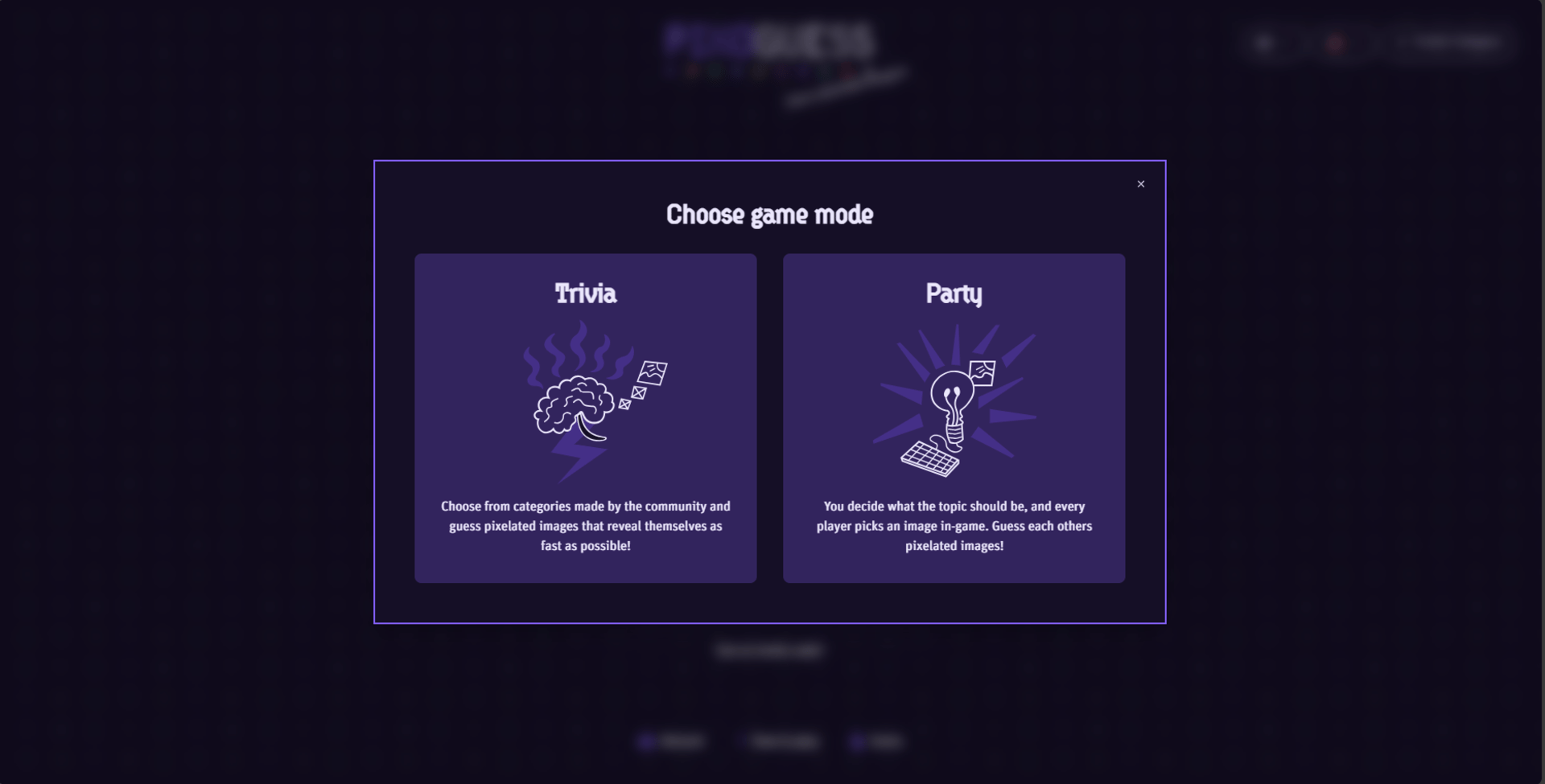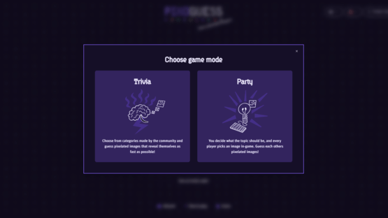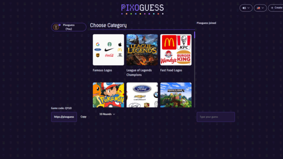 Pixoguess is a web-based multiplayer game where players are presented with pixelated images that gradually become clearer. The objective is to be the first to recognize and correctly guess the image. Players can create private lobbies to play with friends or join public games. The game offers various categories and is designed to be quick and engaging, making it perfect for parties and casual gaming sessions.