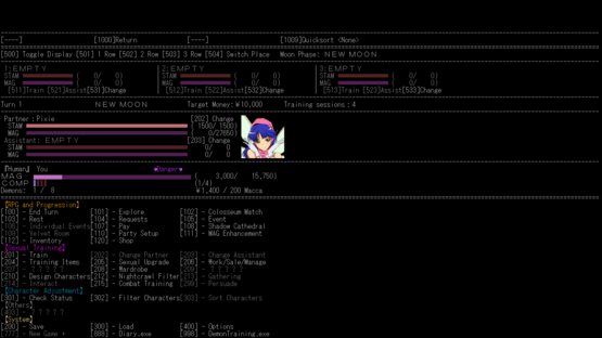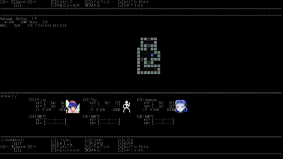 A text-based Megami Tensei fangame that is part dungeon-crawler, part erotic sim game. Previously called eraMegaten (due to being made using the "eramaker" engine), it was first released in Japan on 2chan. An English translation is available.