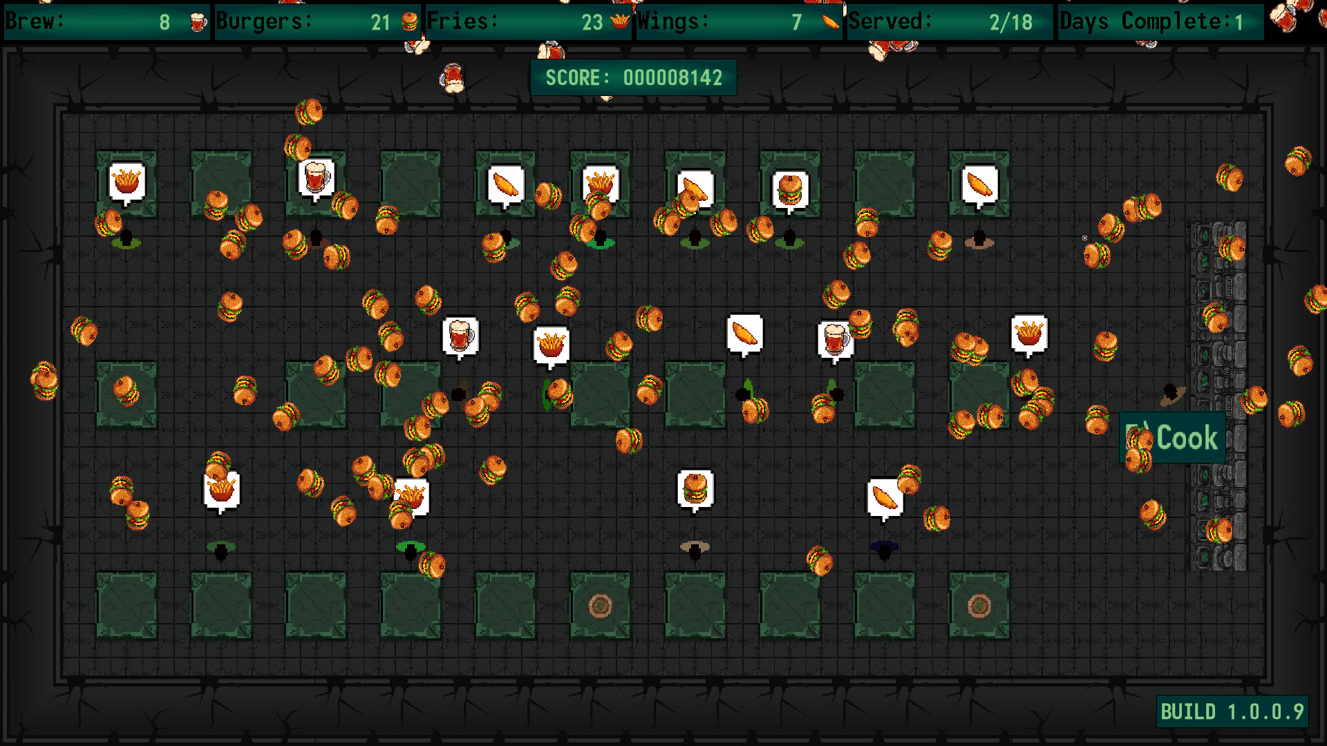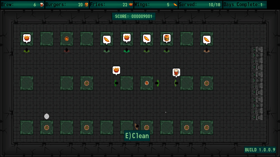 Wanech's C.A.N. becomes a retro green pub serving brew, burgers, fries, and wings to synthwave beats. In this top-down cooking sim, prep meals by hitting W/A/S/D in sequence as orders rain down. Keep plates moving, customers smiling, and the pub buzzing!