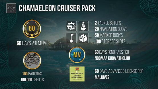 Set off on a 60-day voyage through the rich waters of Noomaa Kuda Atholhu, Maldives! Jump aboard the luxurious Chamaeleon Yacht with two heavy-duty trolling setups, a generous supply of lures and baits, and a spacious Tackle Wagon accommodating over 300 items.