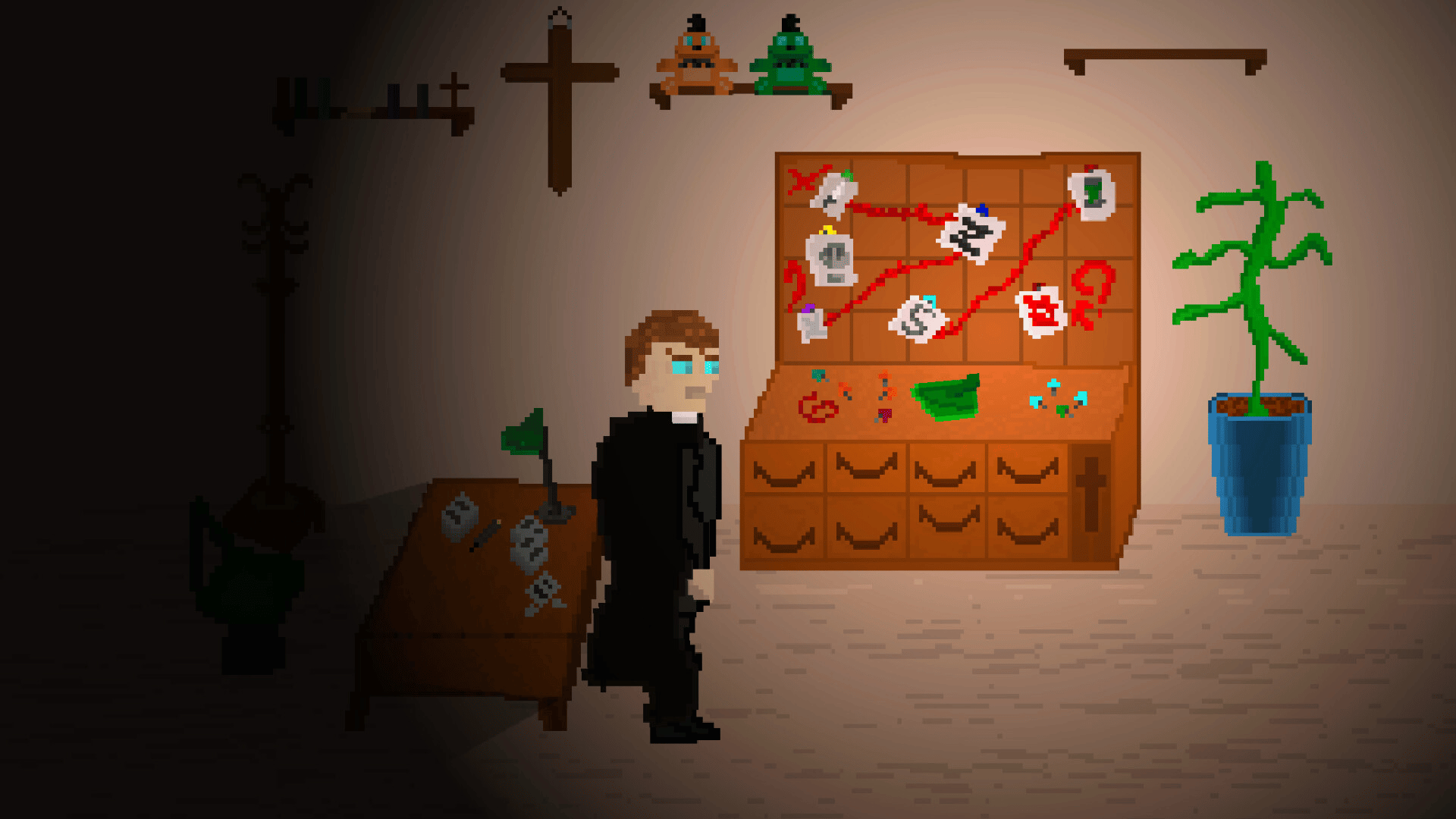 The Sacrilege is a 2D movie-game with interactive minigames to advance the film. The plot follows a newly pastor, starting over in the same town where his past vanished into darkness years ago. But that darkness never went away and... it is about to return.
