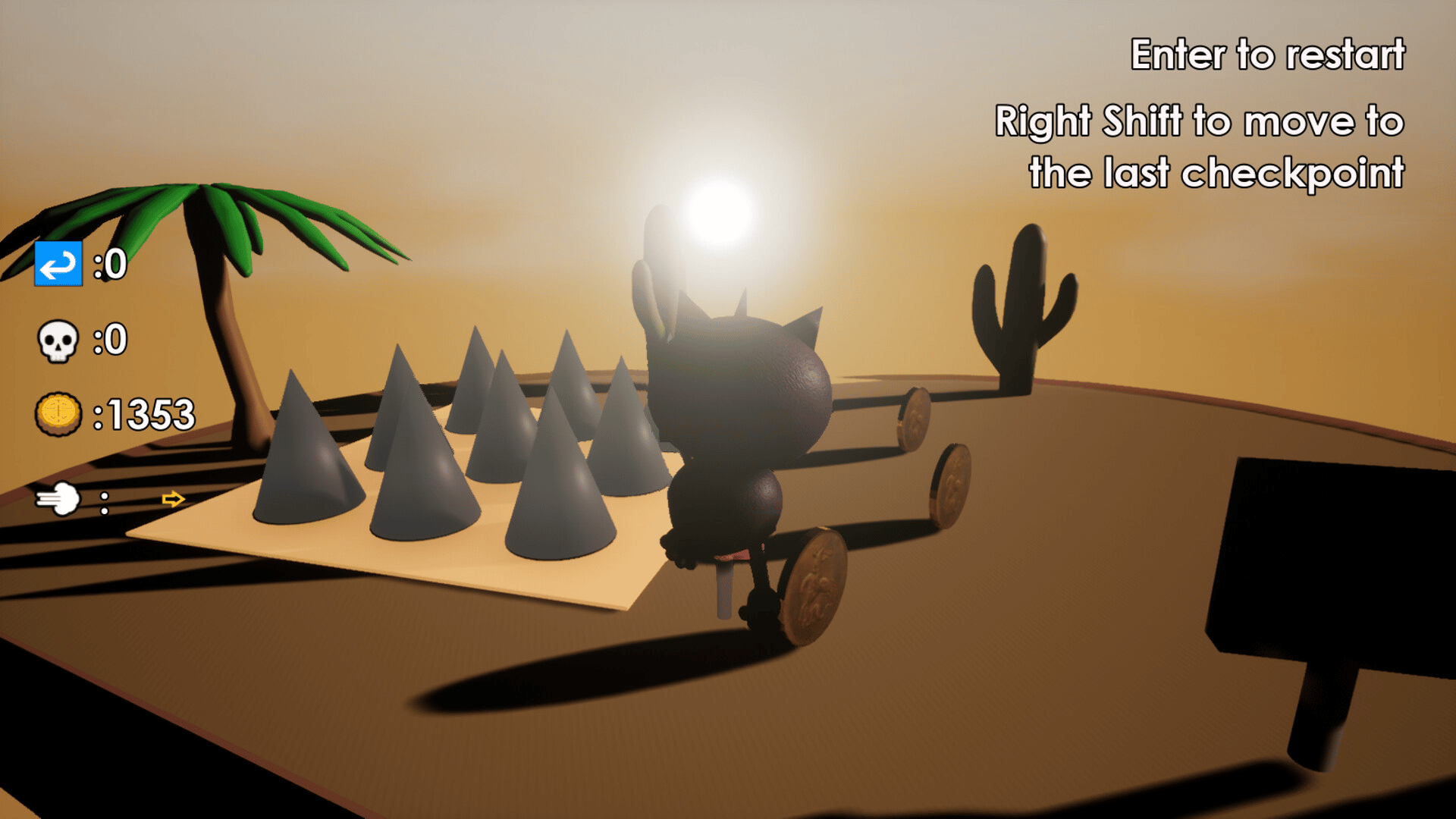 This game is a 3d-platformer, but instead of jumping by yourself you're using pogo, which was inspired by 3D Hopper tech demo for Nintendo 3DS. Select one of your favourite cat characters (including Neco-Arc!), try yourself on 25 levels in 5 different settings, and get ready to die. A lot.