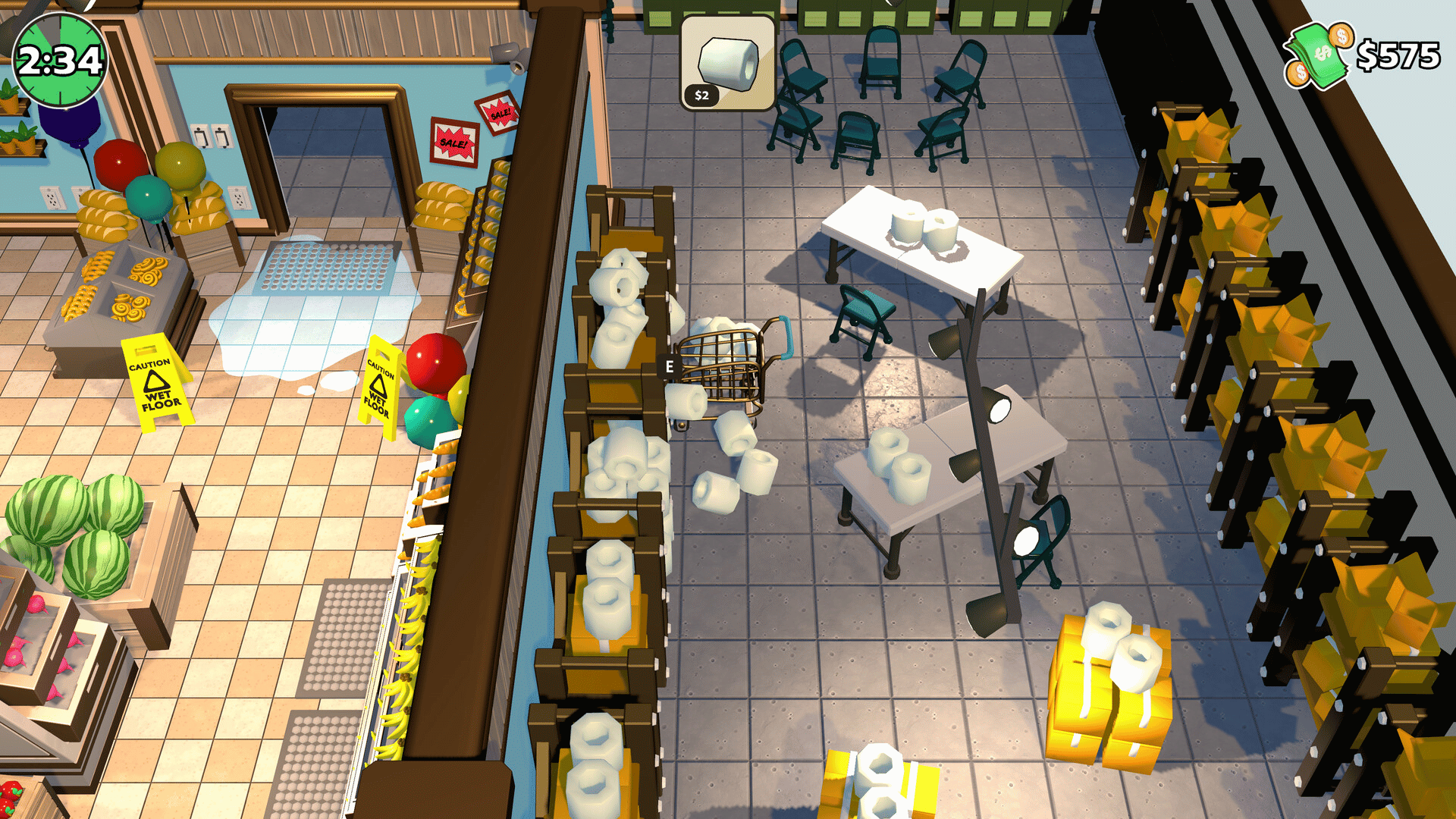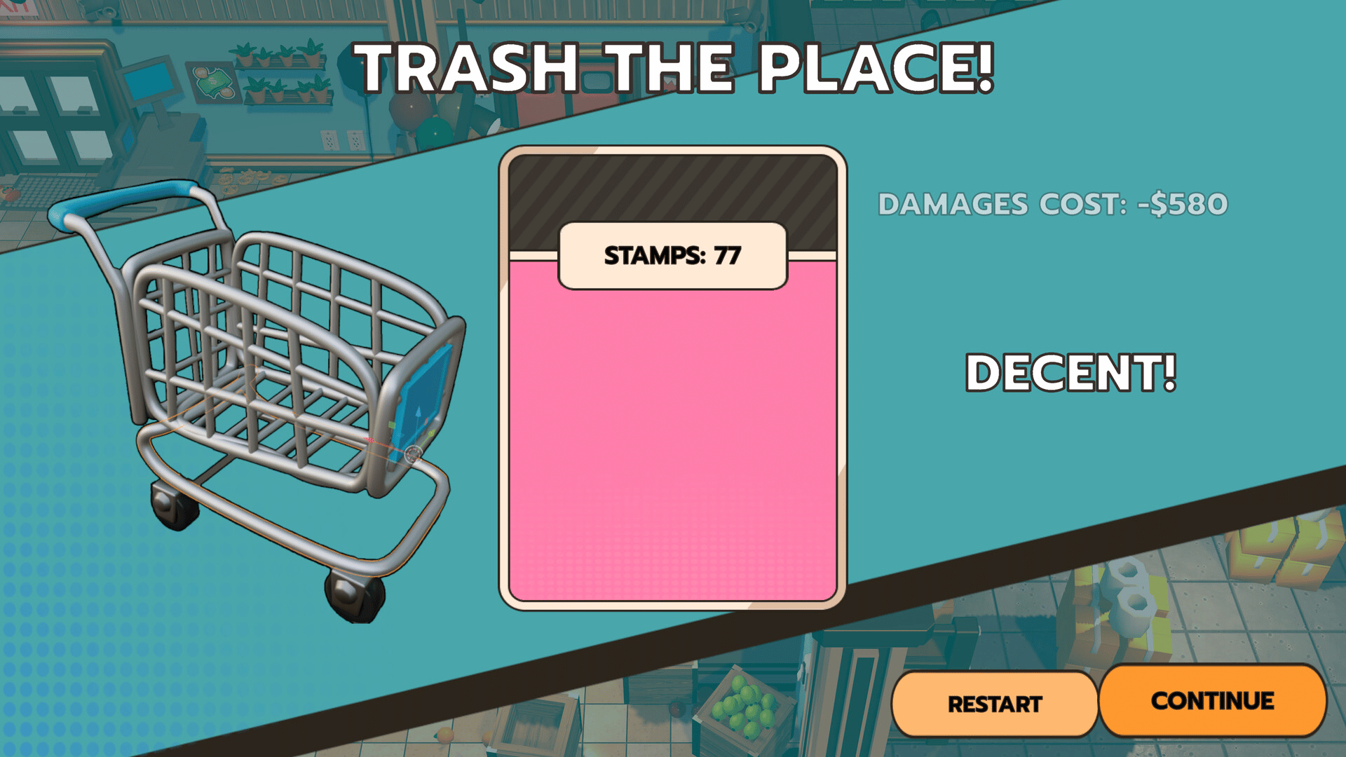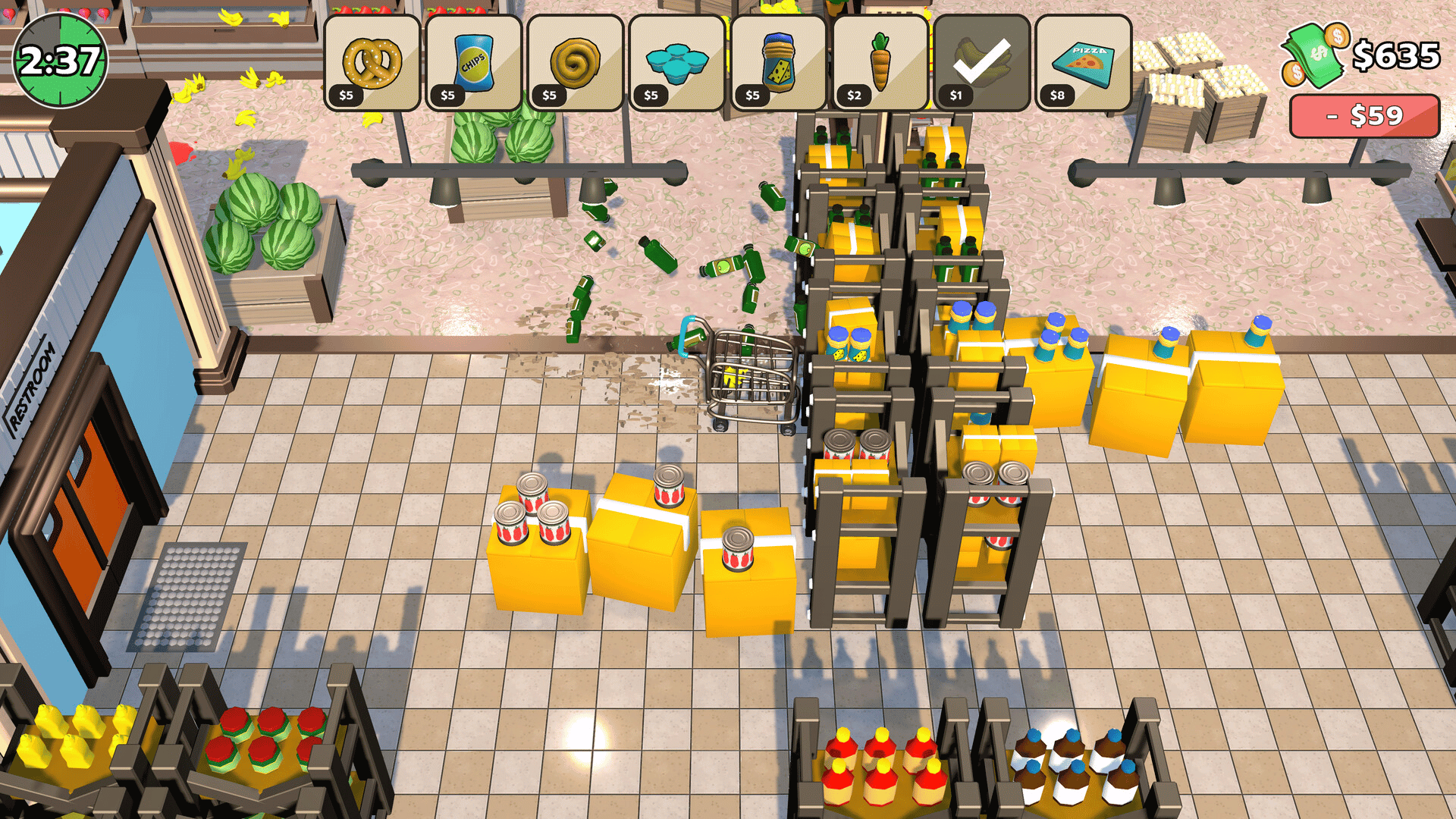 Checked Out is a casual action game where you race against the clock as a mischievous shopping cart - collect groceries, dodge damage fees, and wreak comedic havoc in physics-based challenges.
