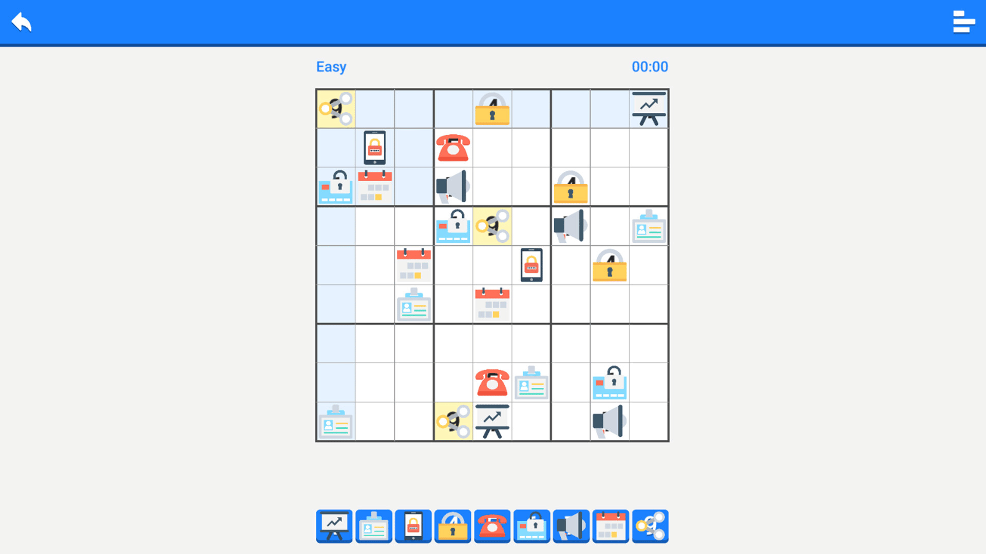 This is a variant of a very classic Sudoku game. Within a 9X9 grid, 9 different icons are placed, ensuring that each row, each column, and each section contains 9 different icons. It is extremely challenging.