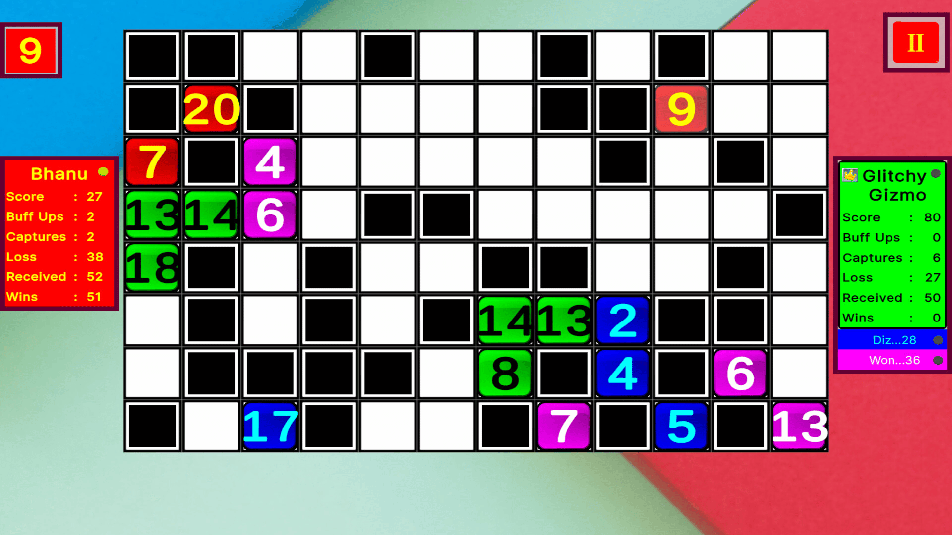 Master the grid in Squares Proximity! A single-player, turn-based strategy game of precise placements and clever captures. Outsmart the AI by placing numbered squares to boost your tiles and steal theirs. Simple rules, deep decisions. Are you ready for the challenge?