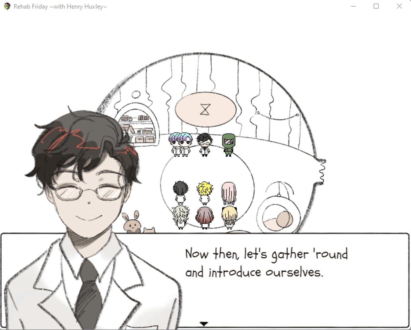Rehab Friday ~with Henry Huxley~ is a game with visual novel, exploration and puzzle elements. Shares the same universe with Hello Charlotte series.