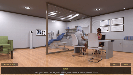 Enjoy an erotic visual novel featuring two hot women and an engaging sex simulator. Juliette and Natalie sneak into an unused doctor's office to play out one of their wild fantasies. A naughty nurse and patient sex game in the right setting.
