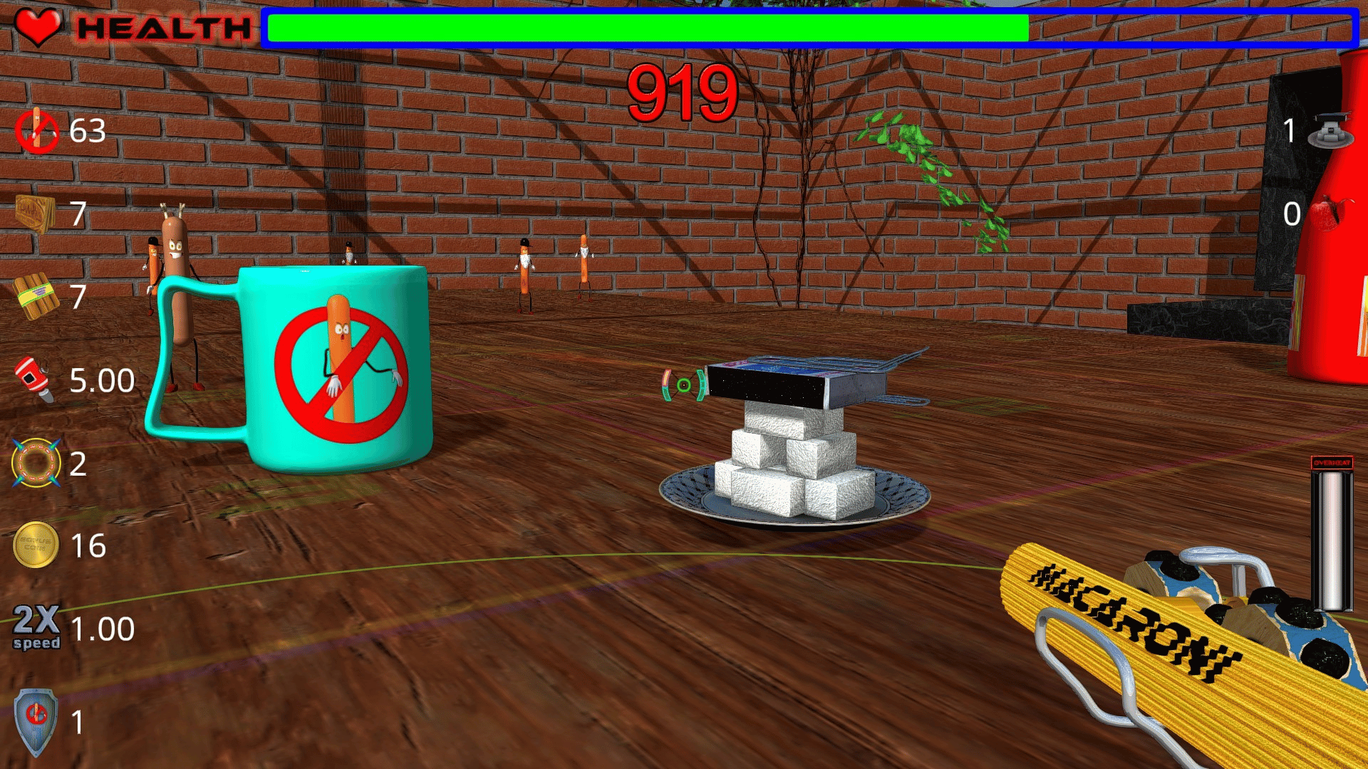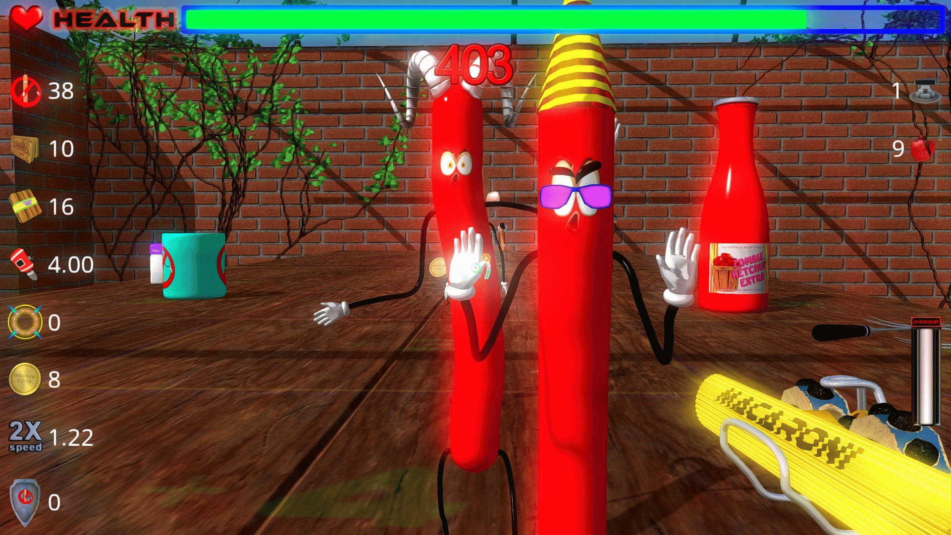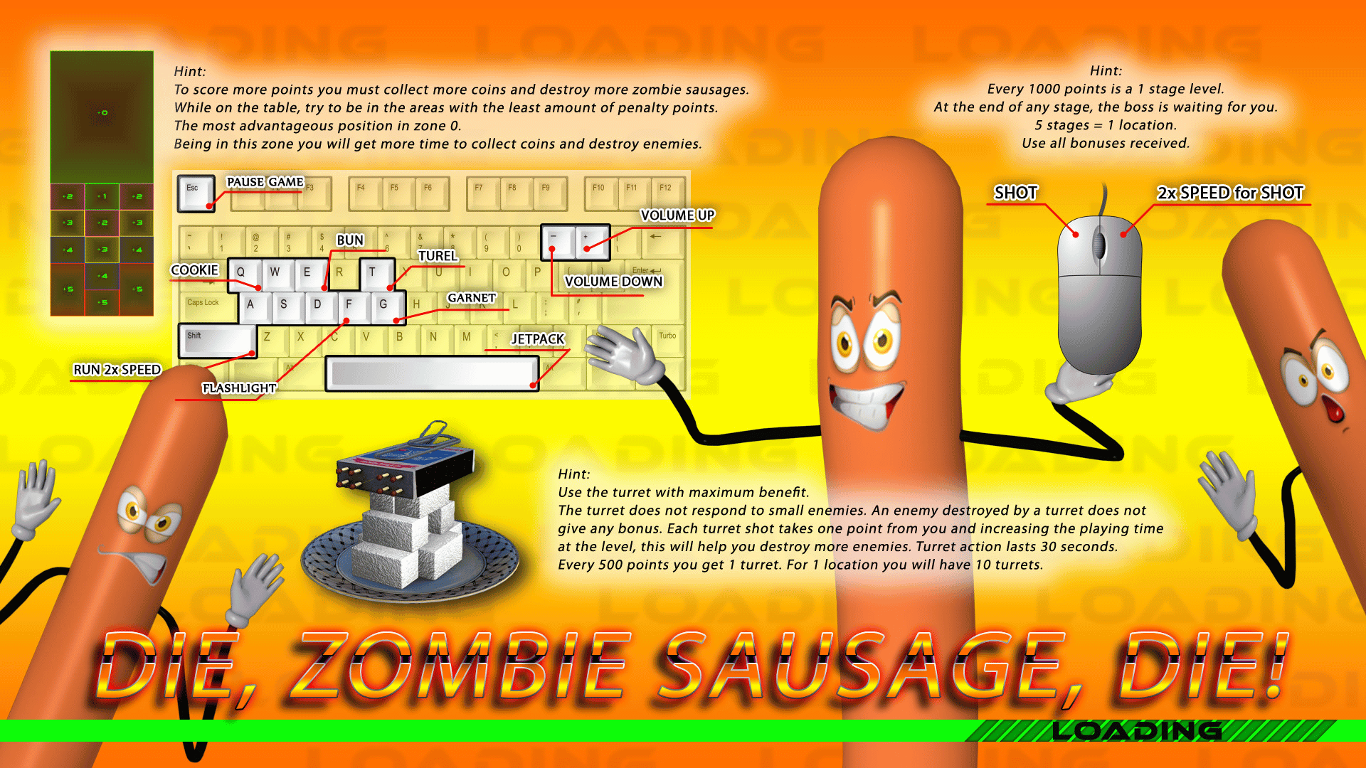 Arcade for the little ones professional. Hold on to the table against the zombie sausages as long as possible. Make your way to the top of the leaderboard.