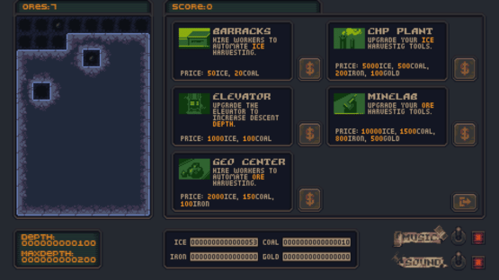 In North Depths, you are the manager of a secret government project — a boring one, though. You've been assigned to create a deep mining shaft because scientists believe there's a lot of gold buried far underground. Break through the ice to mine various ores below and purchase upgrades to automate the process.
