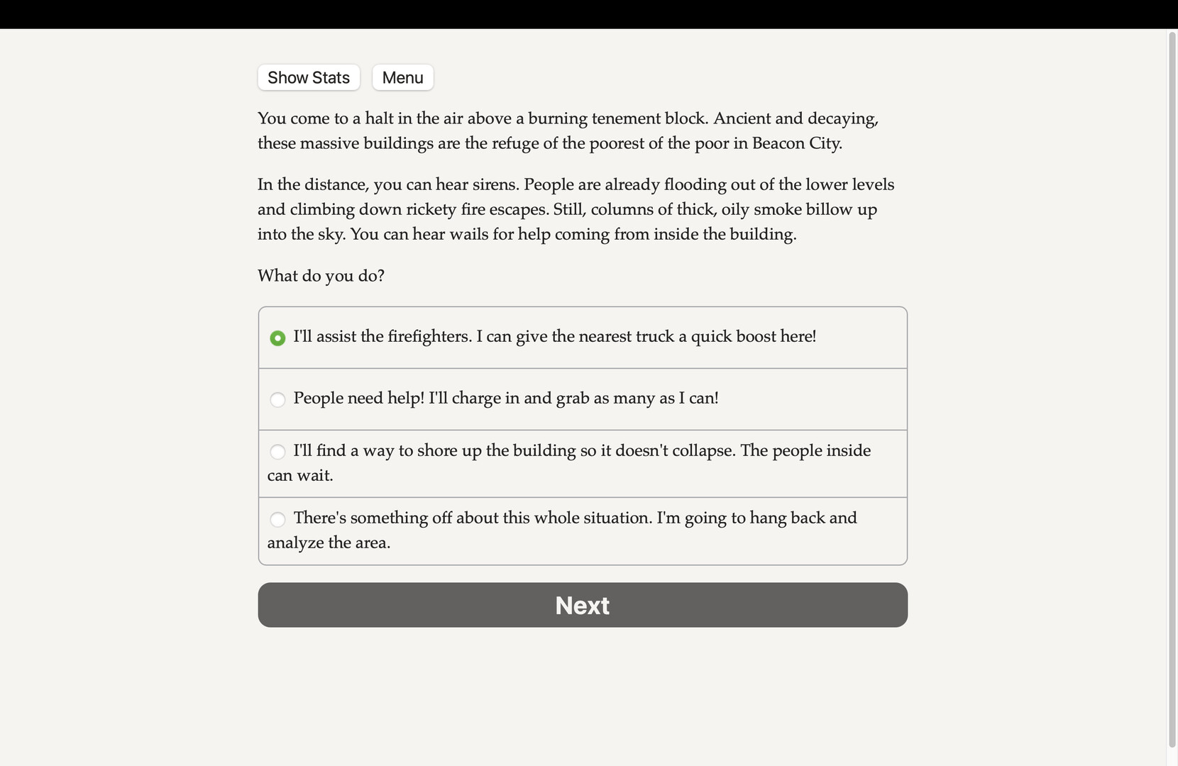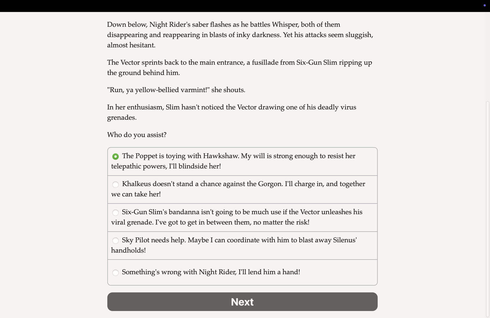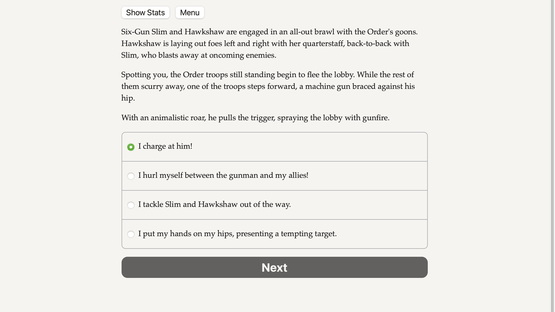 Shrug off bullets, smash buildings with your bare hands, and soar through the air as you battle diabolical supervillains! A text-based interactive superhero novel.