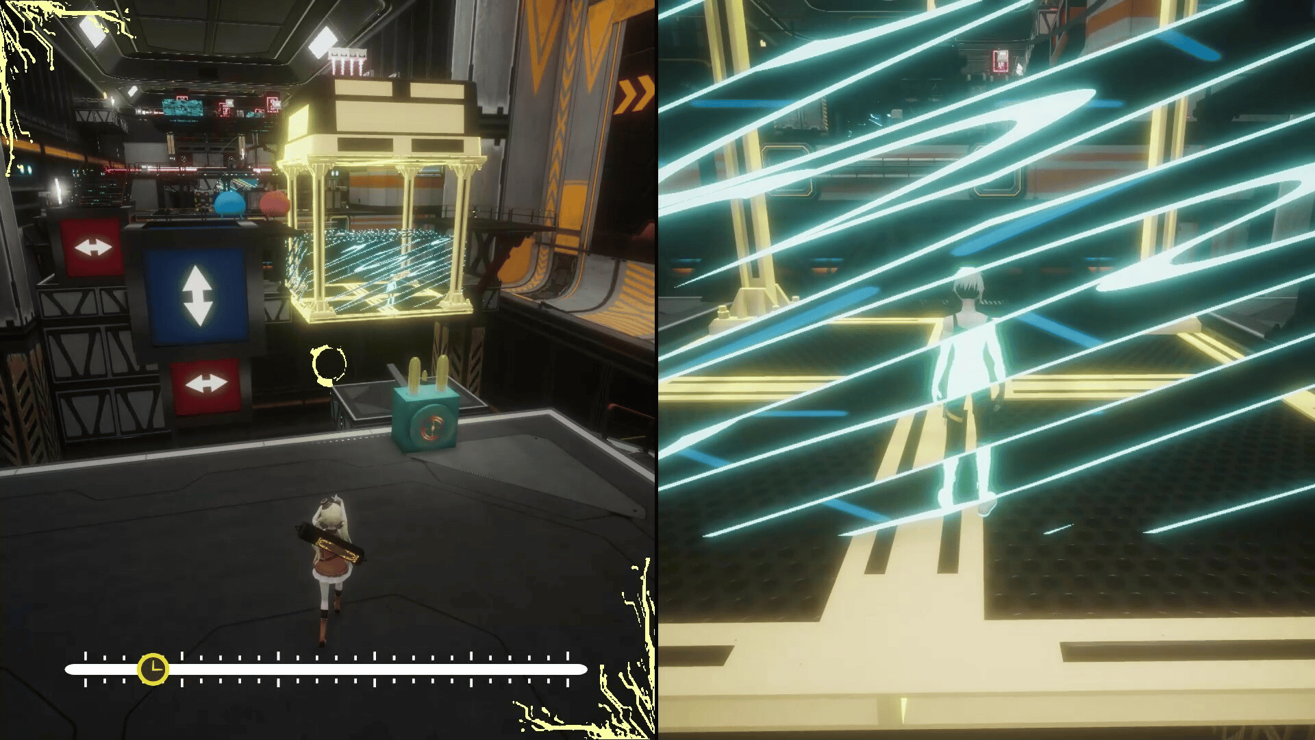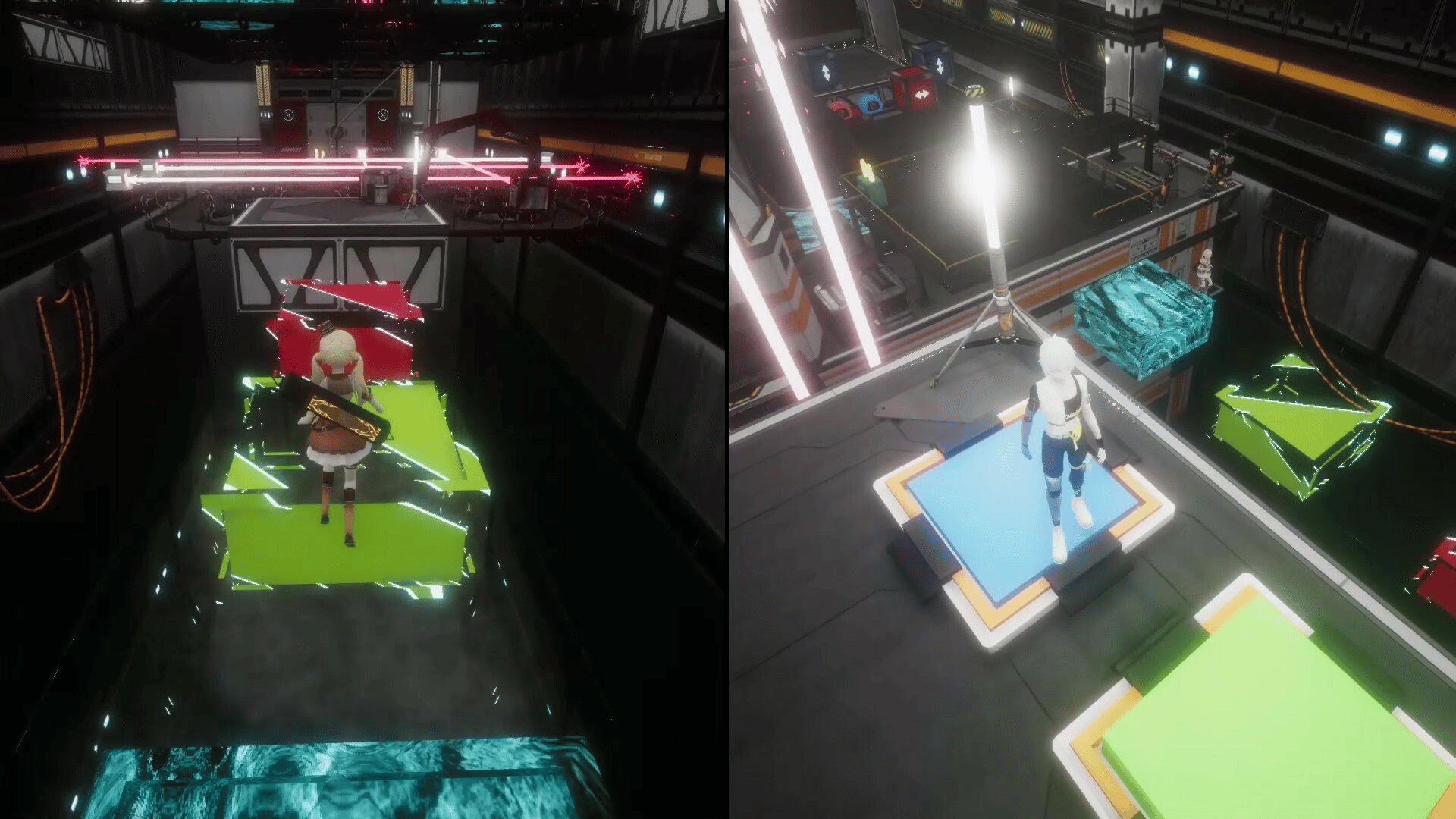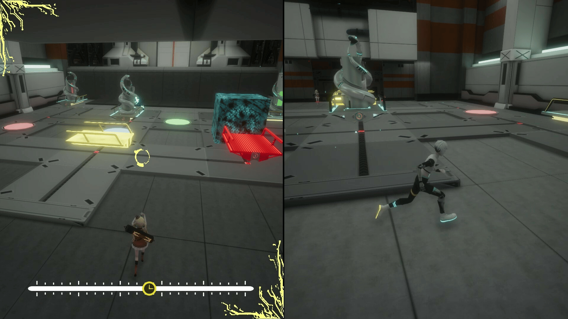 This is a co-op puzzle game centered around time control and object manipulation. Player 1, Sofia, has the ability to control time. Player 2, Thirteen, can alter objects using their energy, and even transforming themselves into energy to access unique abilities.