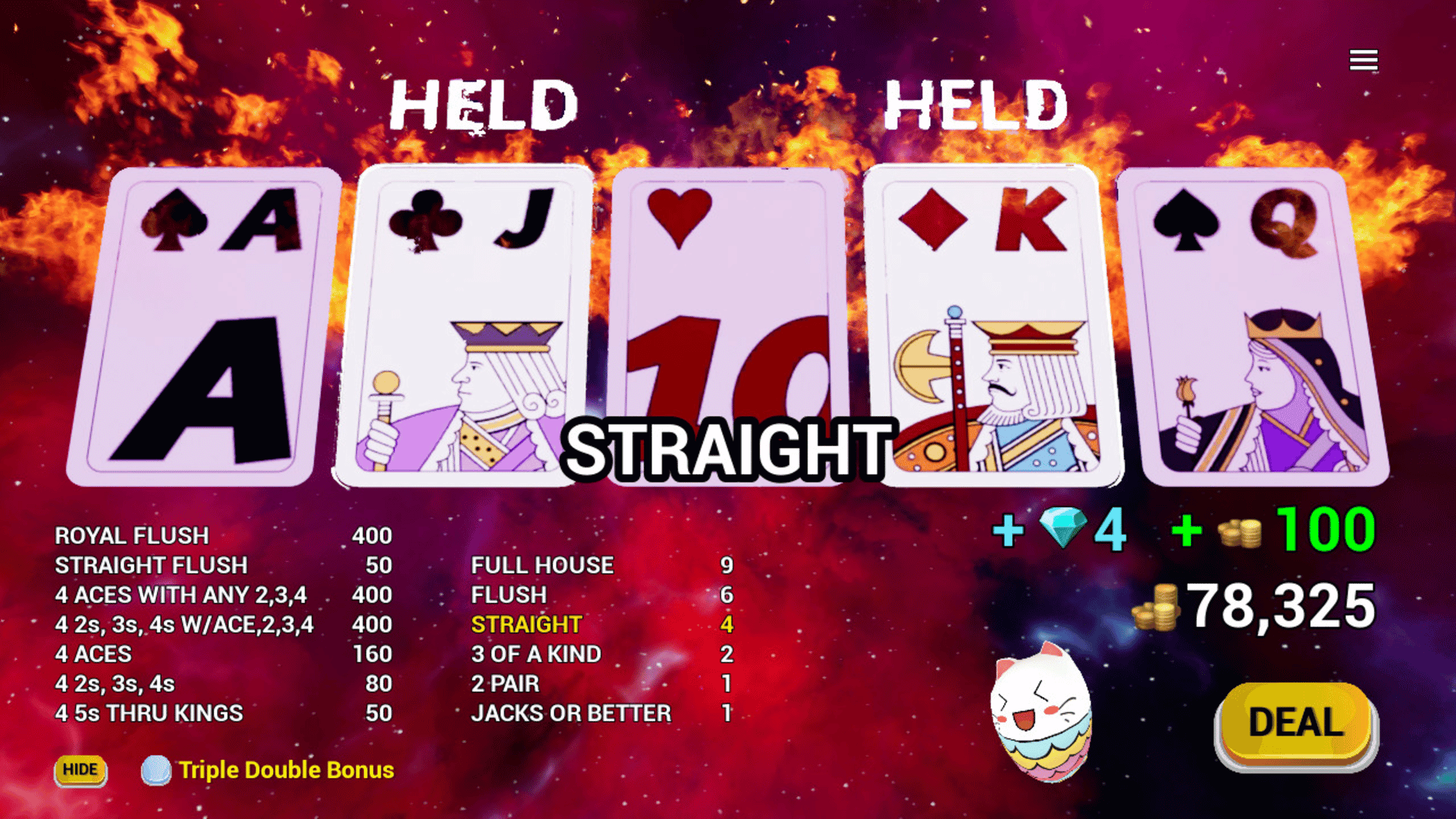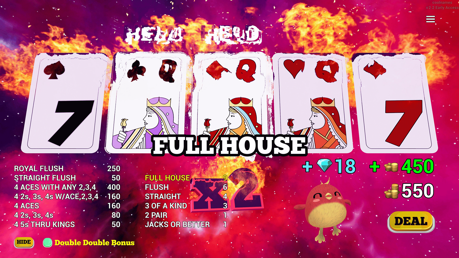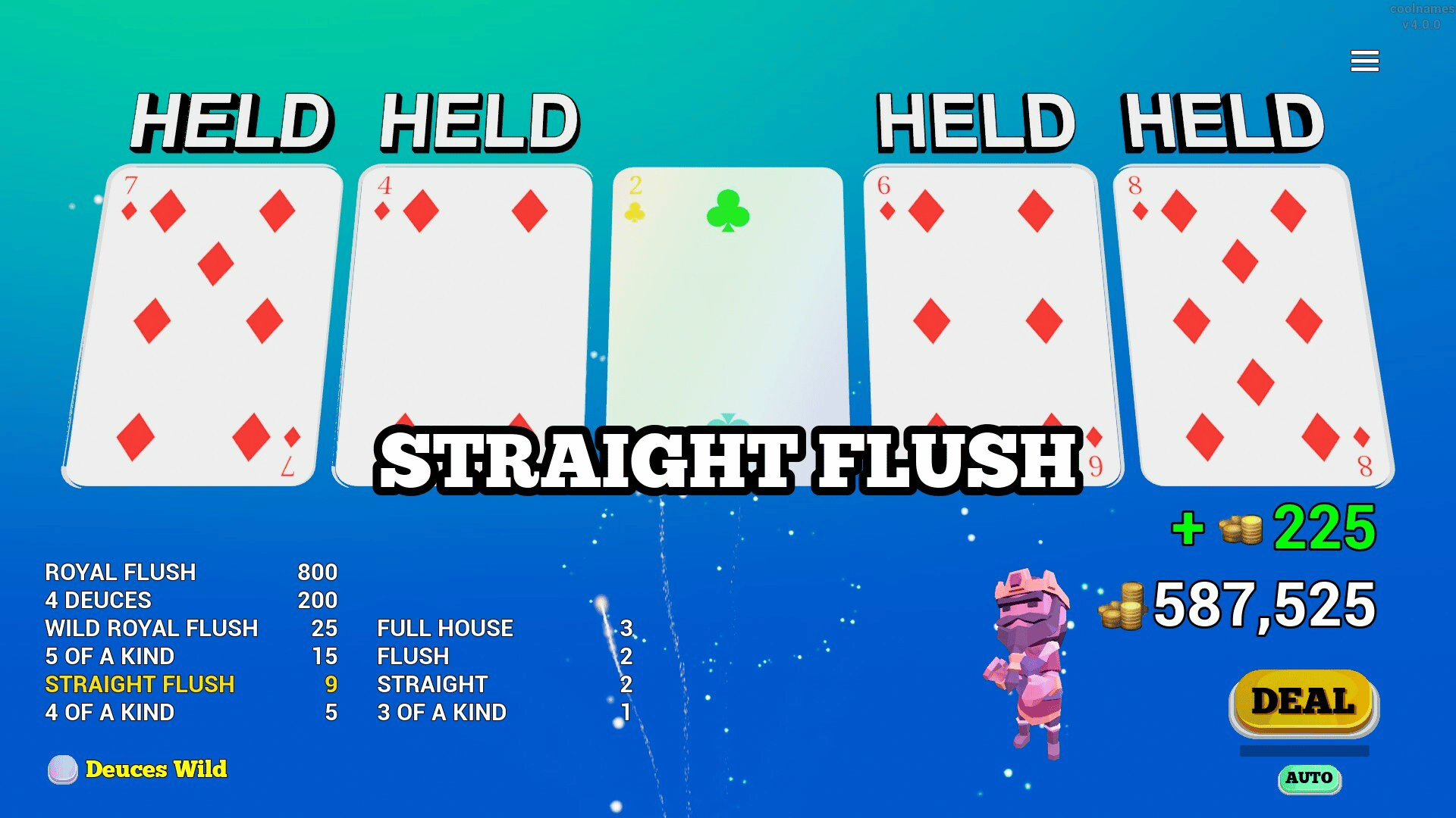 Video poker, enhanced with modern styling and features! Now with Deuces Wild! Relax and casually play, until you win big!