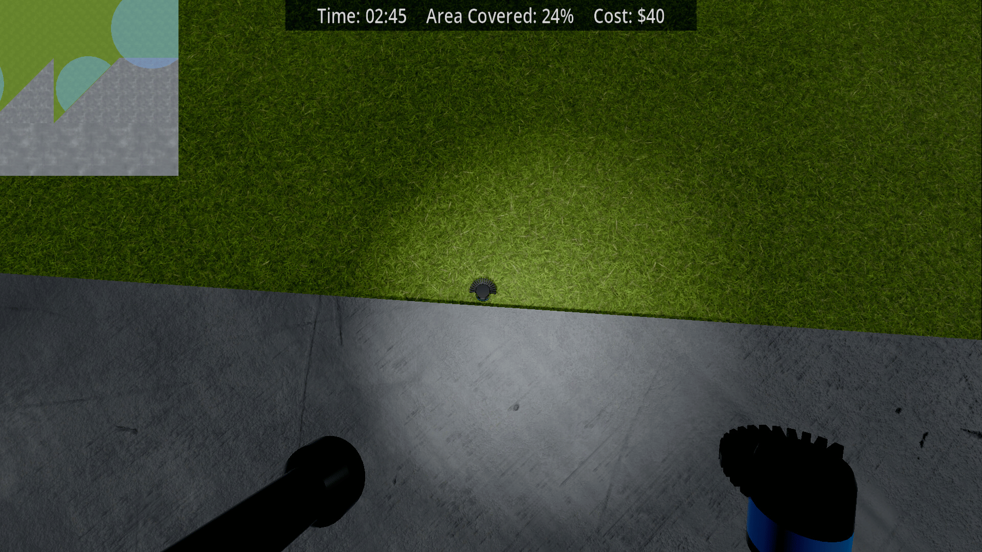 You install sprinklers for a sprinkler installation company. Accept orders and cover as much grass as you can within the given budget.