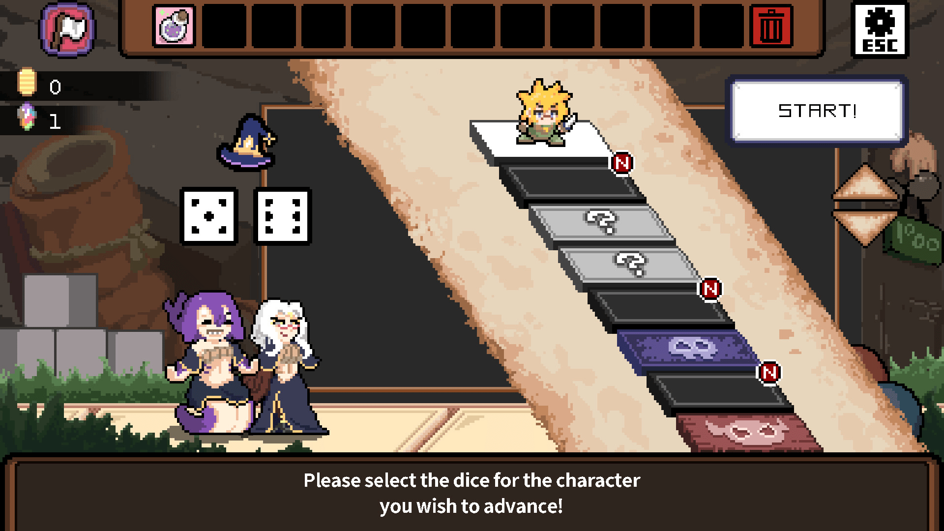 The knight ‘Ail’ awoke in a dungeon where everything is decided by dice. Right beside ‘Grin’, witch who can manipulate every die. With this witch's help, ‘Ail’ heads toward the dungeon. To rescue someone trapped within it. Roll, manipulate, and change fate in turn-based roguelike. ‘Destiny Is Dice’.