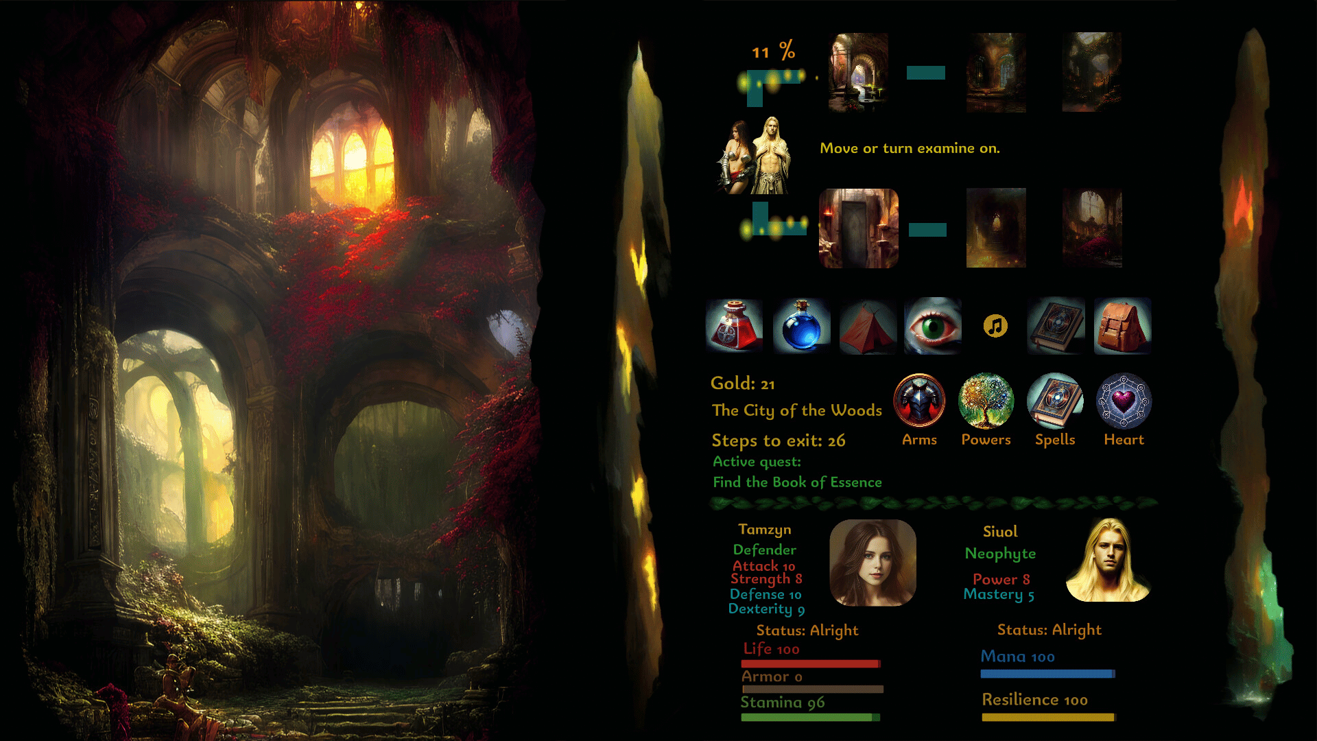 Guide Tamzyn, the dryad warrioress —deadly and beautiful— and Sioul, the wizard —tenacious and powerful— to explore together forgotten cities of mysterious beauty and dungeons filled with dangerous monsters. Action, magic, and romance!