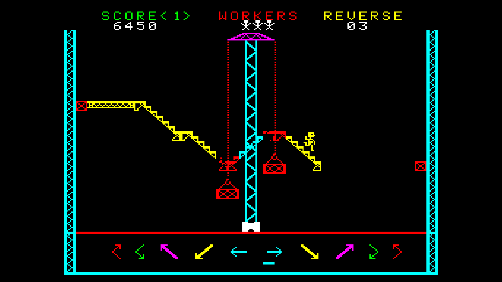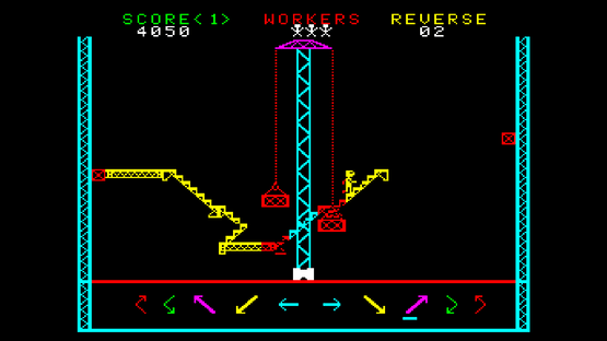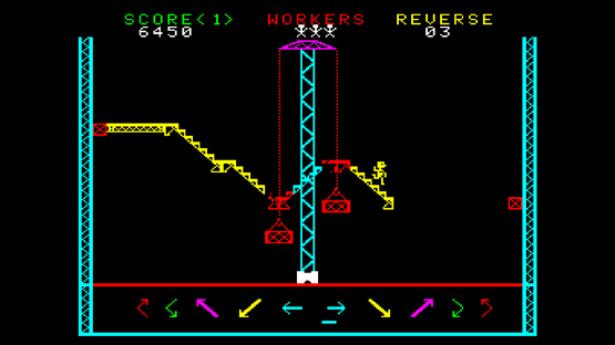 "STEEL WORKER" is a puzzle game released by TAITO in 1980. In this game, your objective is to connect a path to the destination by placing scaffolding for a workman performing high-altitude work on a construction site, ensuring he does not fall. To prevent the workman from having an accident, it is sometimes necessary to strategically place the scaffolding so that he takes a detour or reverses his path. Remember to value your workers! Stay safe out there!