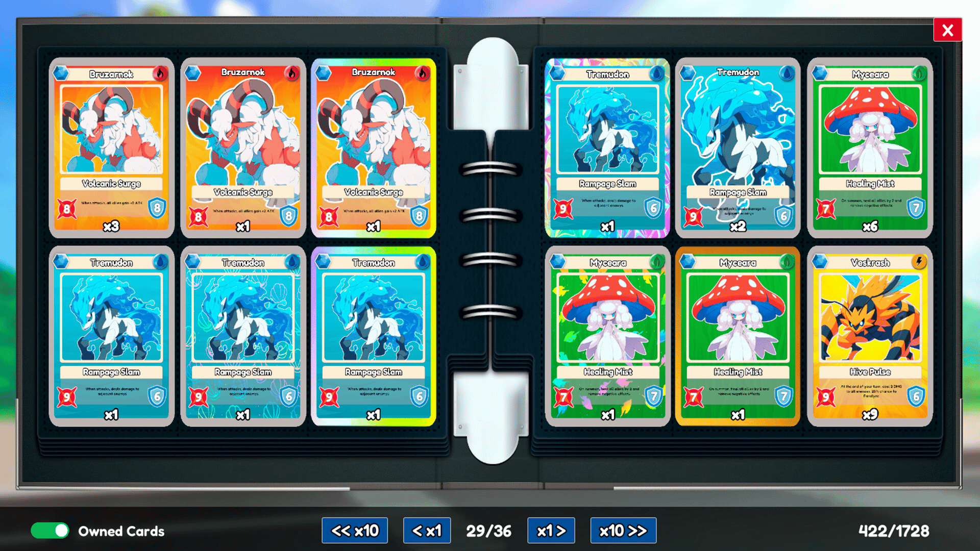 Claim a free pack of cards every few hours and expand your collection! Discover hundreds of unique cards with different styles, rarities, and visual effects.