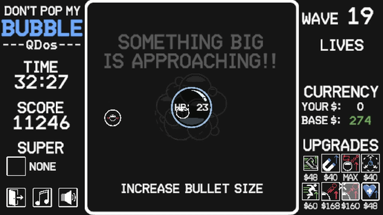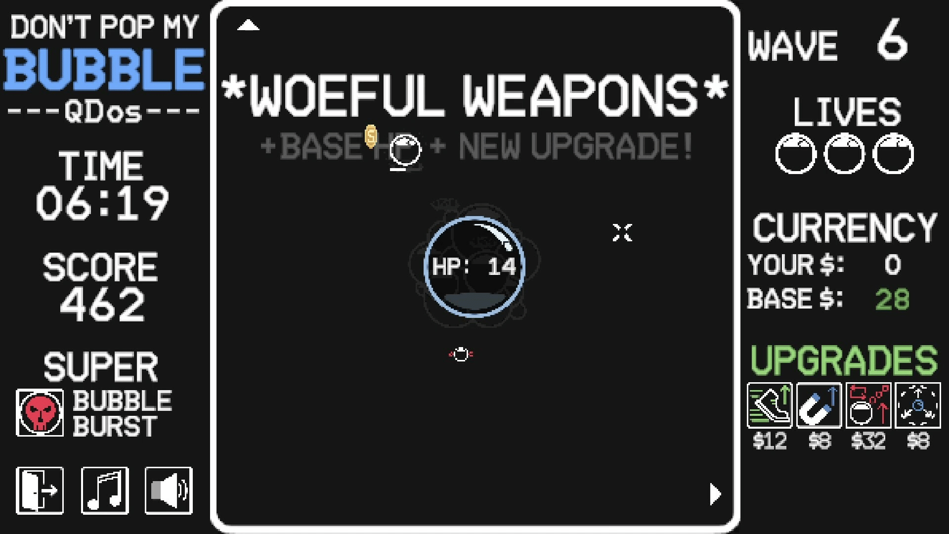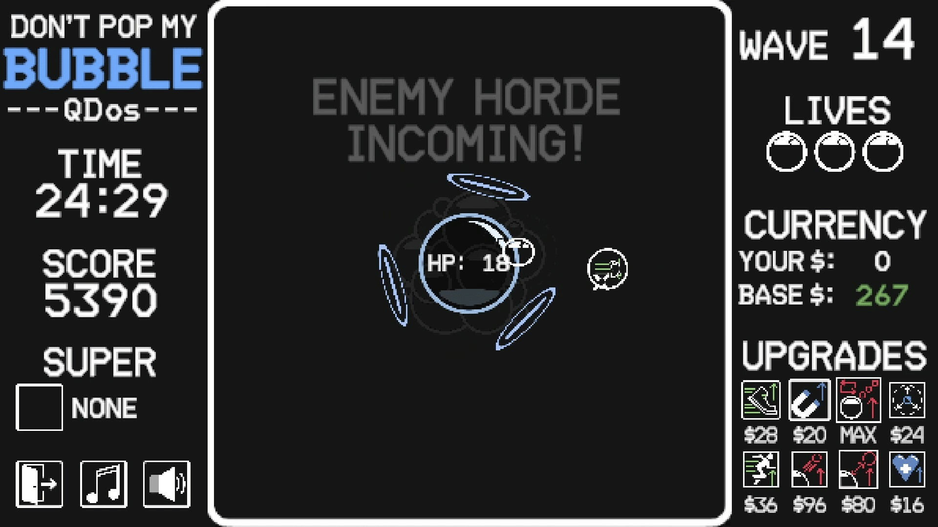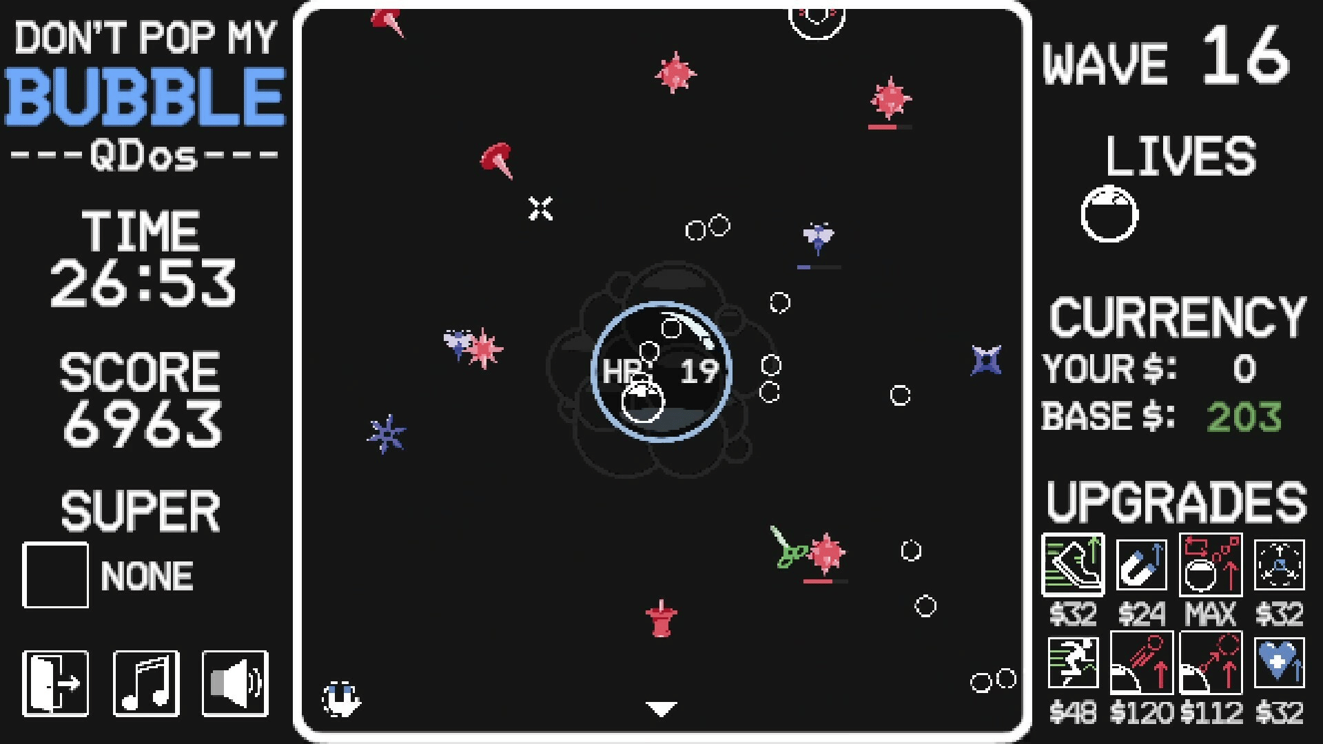 Shoot! Upgrade! Defend! In this twin-stick roguelike, protect all things bubble from infinite waves of pointy bad guys! Upgrade yourself and your base, or better yet, use a super attack, and stop everything from trying to pop you!