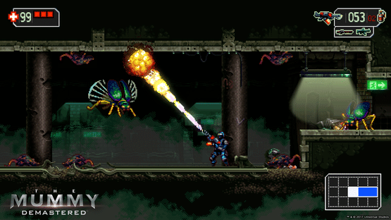 "A powerful ancient evil has arisen, and the war to save humanity has begun! The Mummy Demastered throws you into a 16-bit-inspired battle against the undead in a 2D, nonlinear, action-packed adventure. As an elite agent in the monster-hunting Prodigium organization, you must use a variety of weapons, upgrades, and mysterious artifacts to defend mankind against the supernatural hordes of Princess Ahmanet. Your Prodigium unit is already on the scene, but HQ lost contact with them hours ago. Only by exploring tombs, forests, abandoned tunnels, and the cursed streets of London will you discover the fate of your allies. But beware - Ahmanet commands legions of undead, insects, plague-ridden vermin, and worse! If you're not careful, you'll be the next soul in her army."