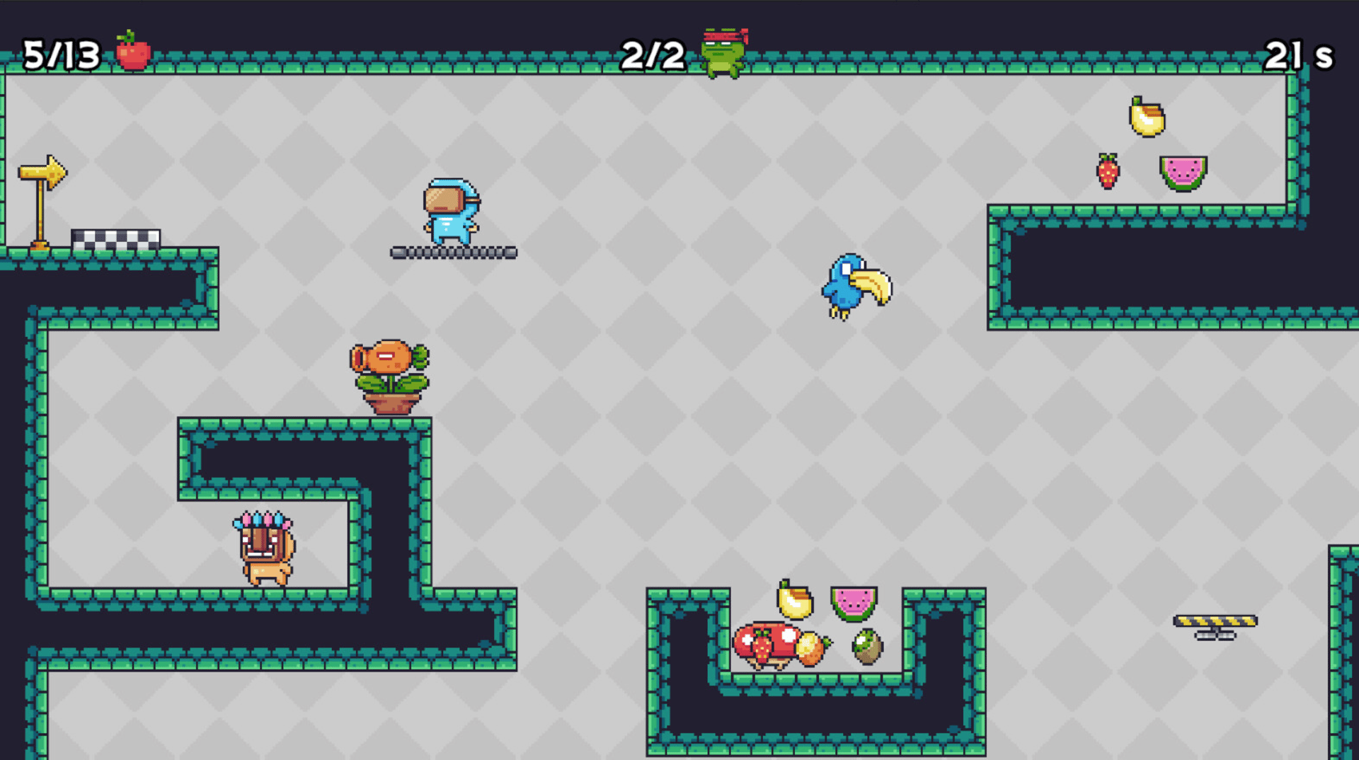 TropTopia is a single-player and local co-op 2D platformer where you make your way through enemy and trap filled levels. Your goal is to collect every fruit in every level. Each level is timed, and you can track your best times in the level select menu for an extra challenge!