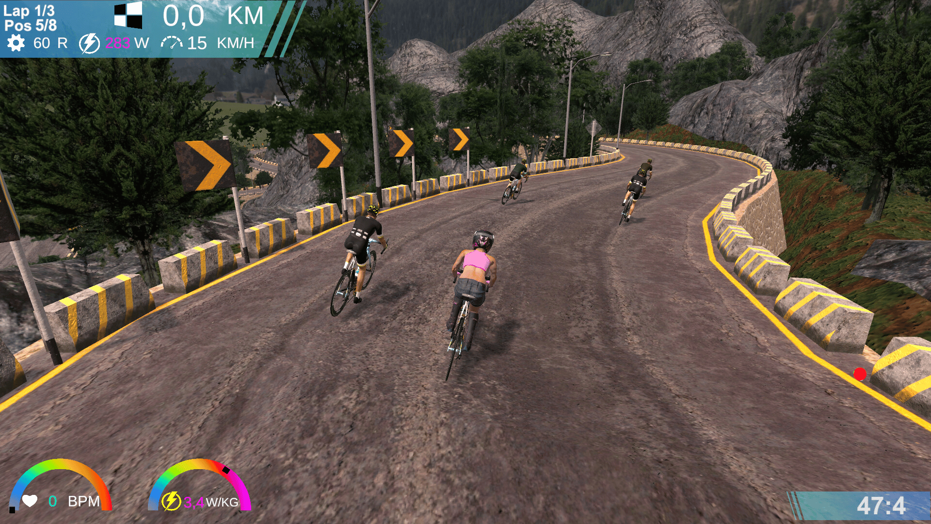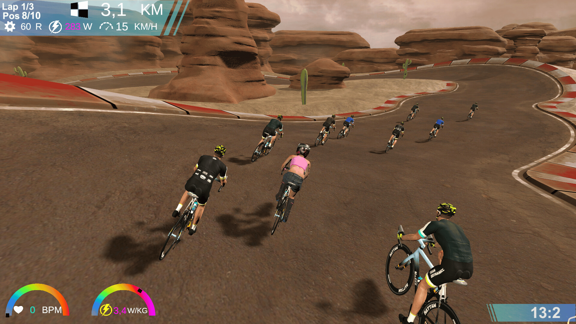 CyclingArcadeRaceSimulator is a fun cycling simulation for ANT+ FEC devices. Opponents automatically adapt to your performance. Experience action-packed races on Formula 1 tracks, in the mountains, or in the desert!