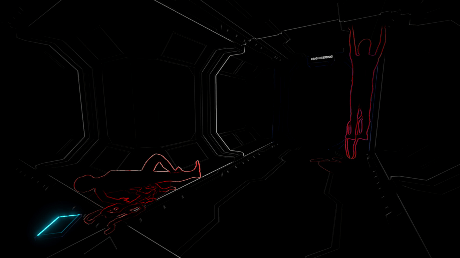 A sci-fi horror game set in a dark space station where only outlines of rooms are visible. Explore eerie corridors, collect items, read notes, solve puzzles, and avoid the terrifying creature lurking in the shadows.