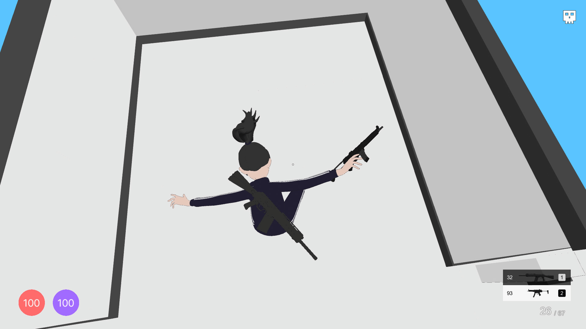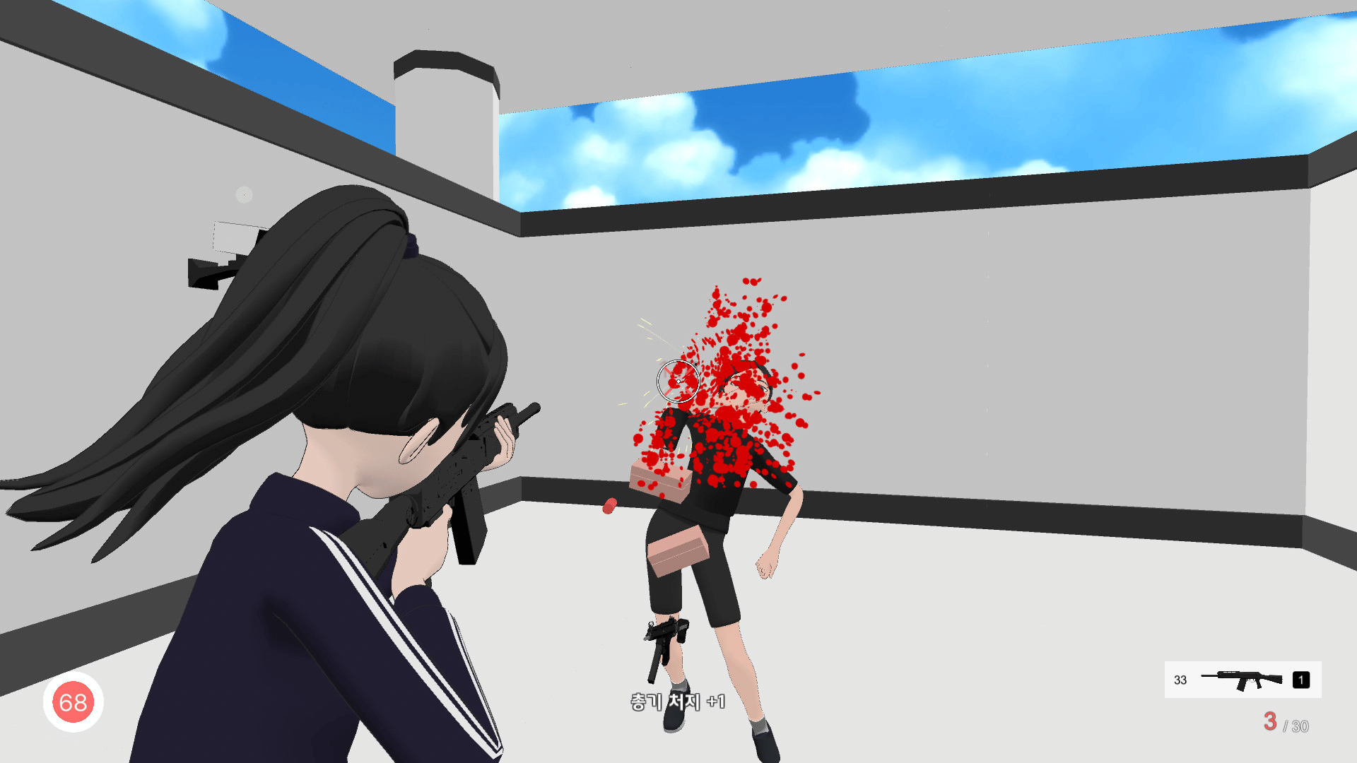 Hello World:ESCAPE is a game created by Korean high school students, where a girl trapped in an unknown space kills enemies and finds an exit.