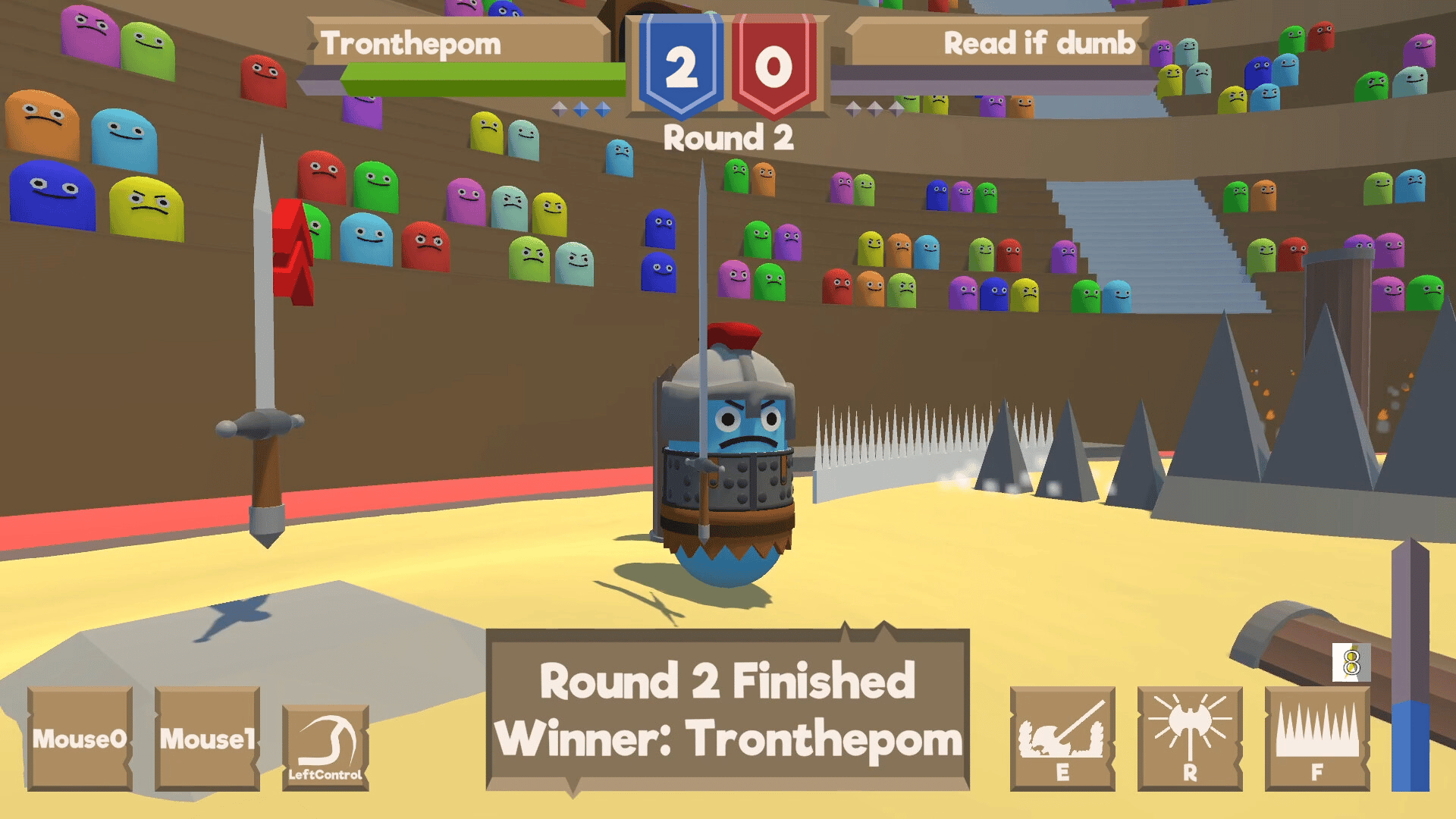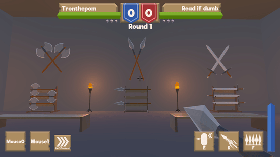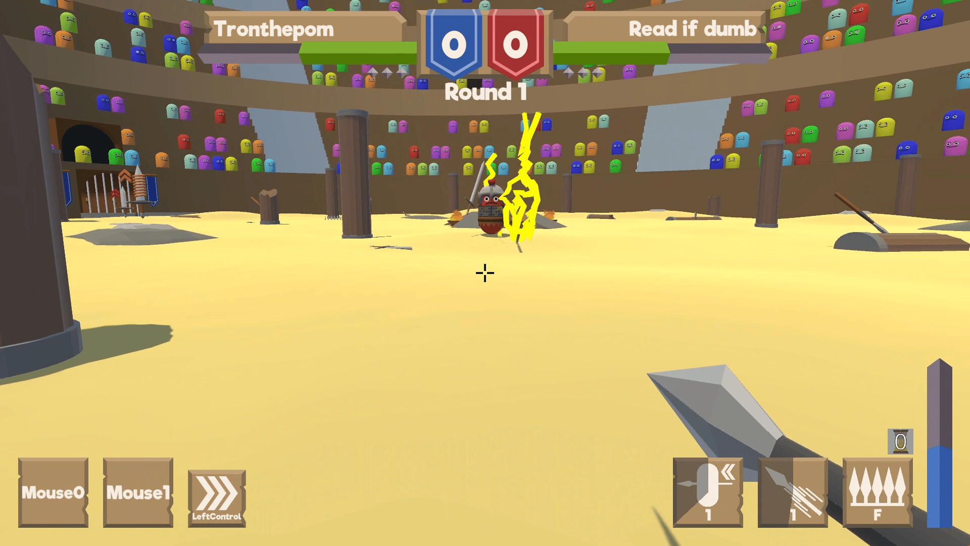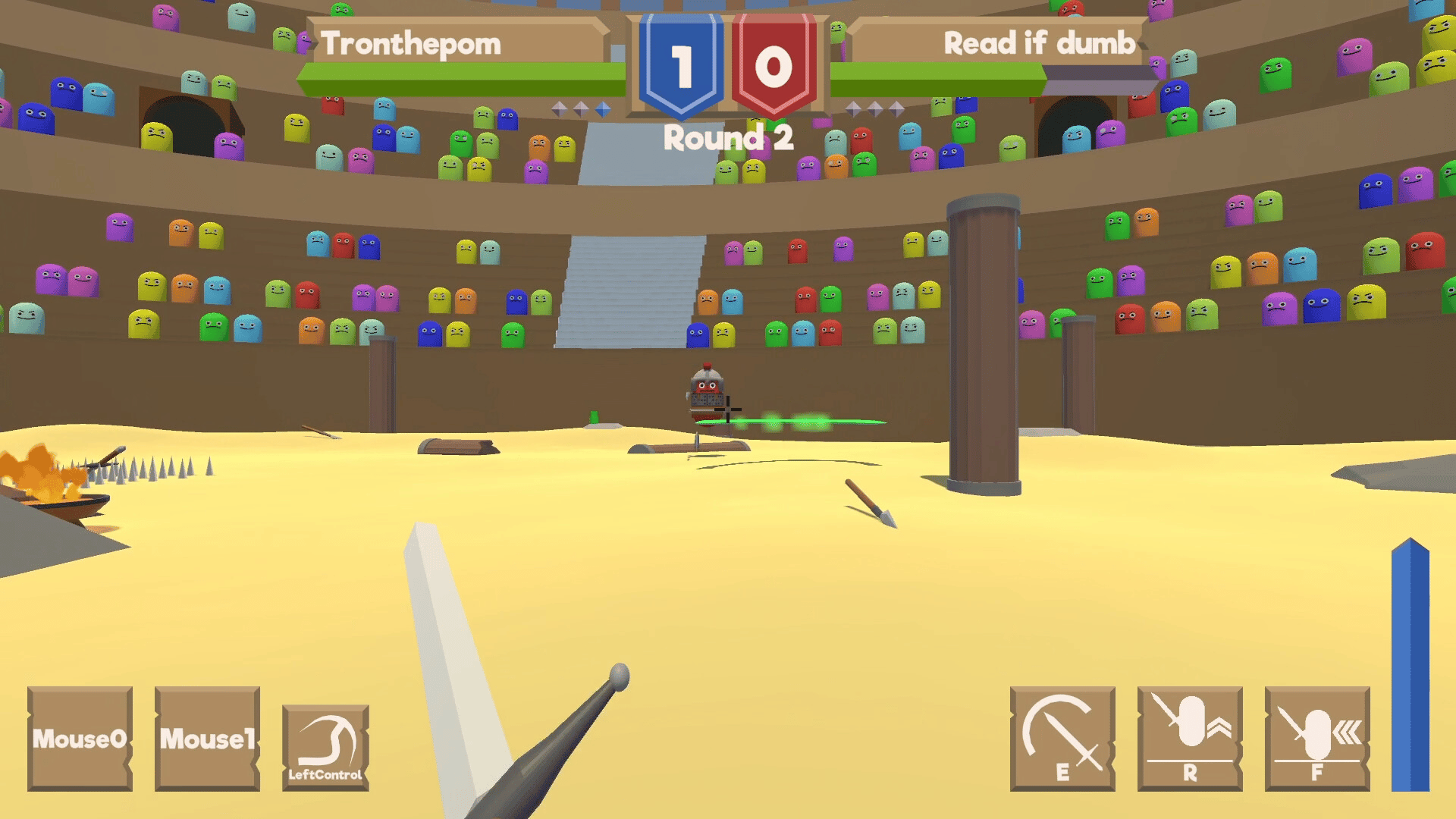 Battle your friends in fast-paced 1v1 arena brawler style duels. Choose from axe, sword, or spear, each with its own strengths, and fight through intense rounds. Outplay your opponent, become champion of the arena, and earn the title of Duelmaster!